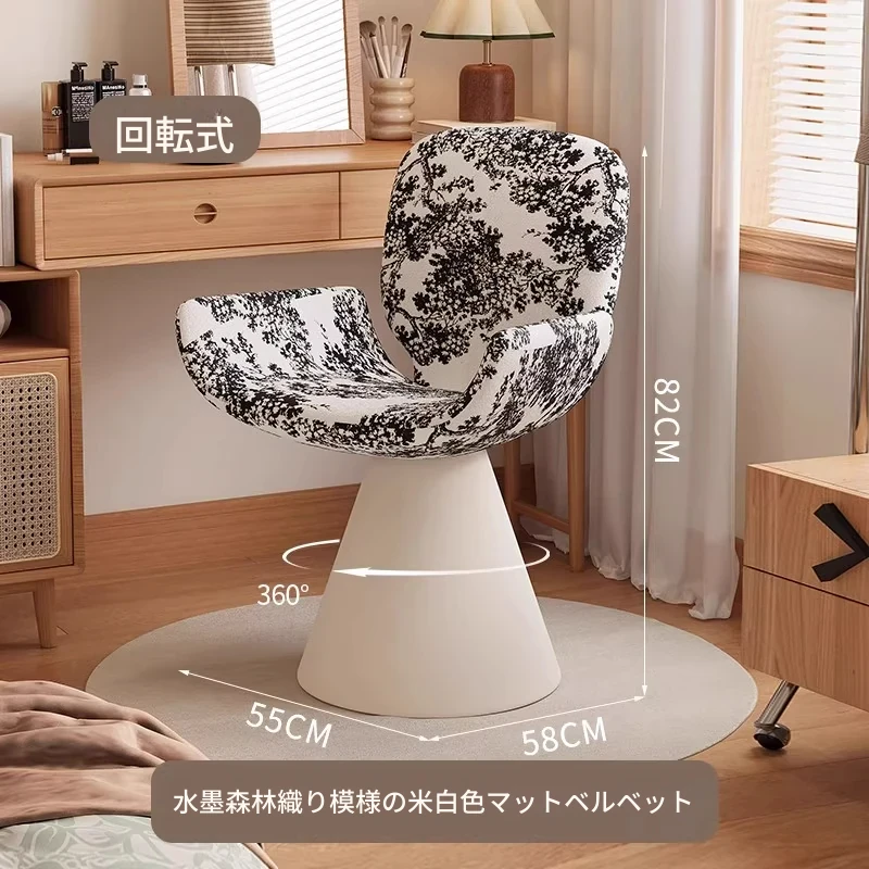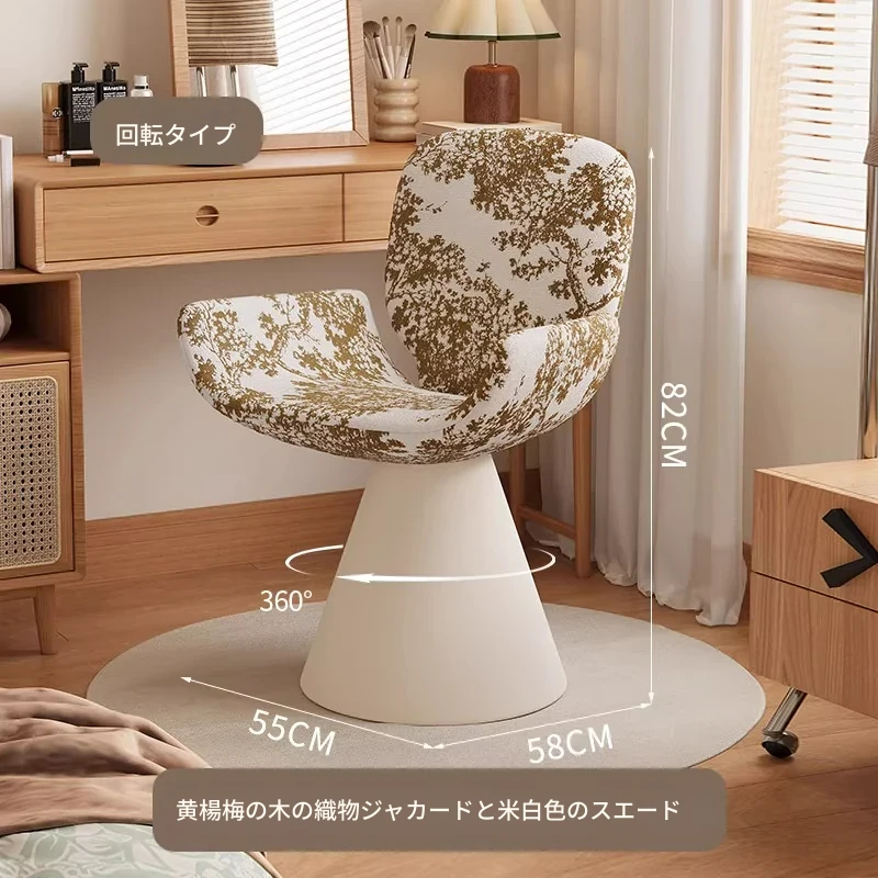 軽やかなラグジュアリーの化粧台スツール - 回転式、シンプルなクリーム風デザイン。女性のための美しい化粧台や美容院にもぴったりなスタイリッシュなチェア!ダイニングテーブルにも最適です。
