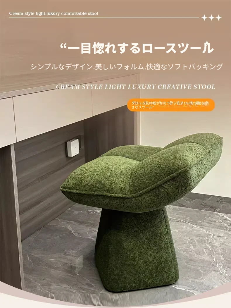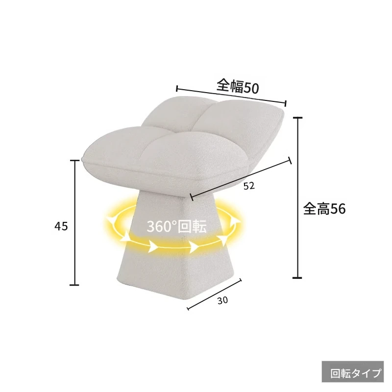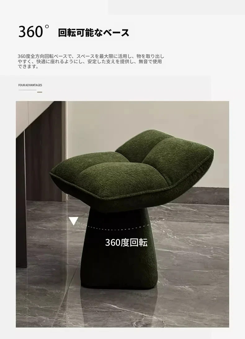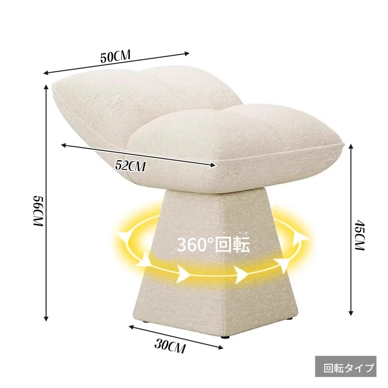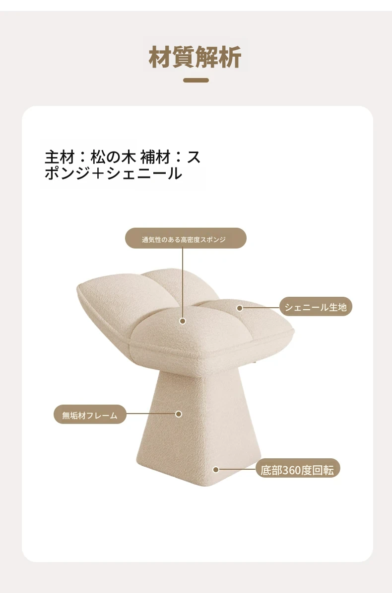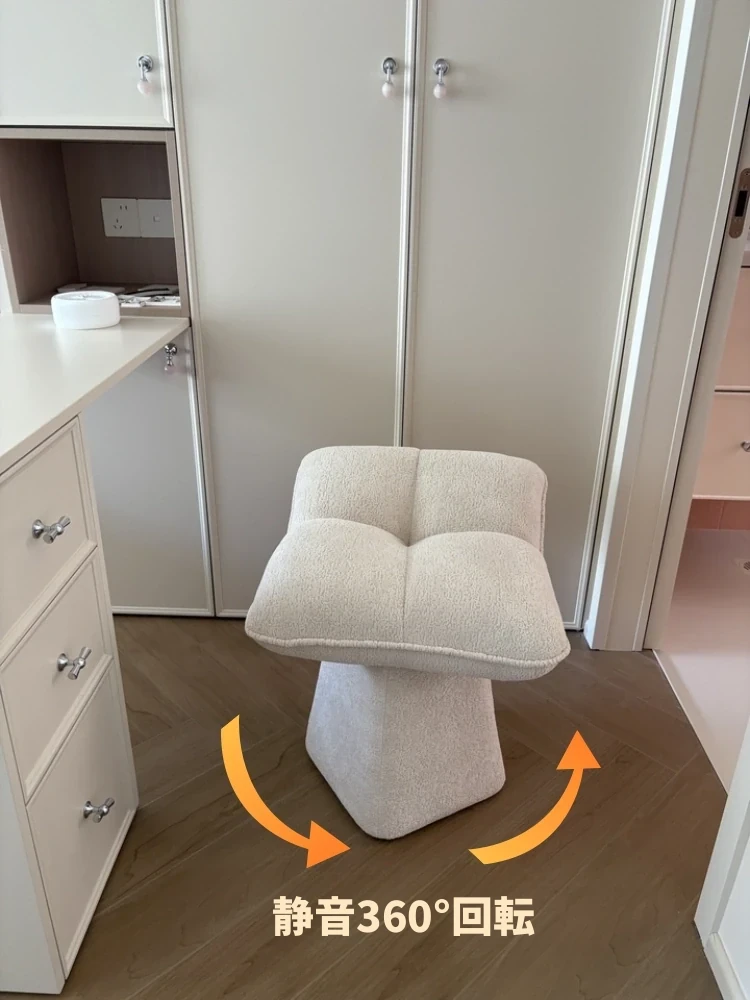 クリームカラーのデザイン化粧台スツール - 回転式で便利な家庭用メイクアップ椅子!寝室やドレッサーにぴったりのオシャレな靴替えスツール。快適さとスタイルを両立させた一品です!