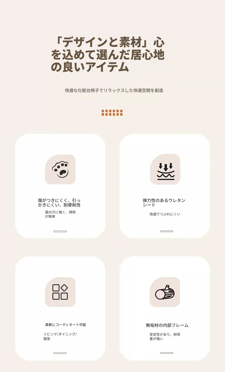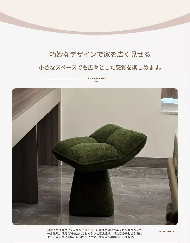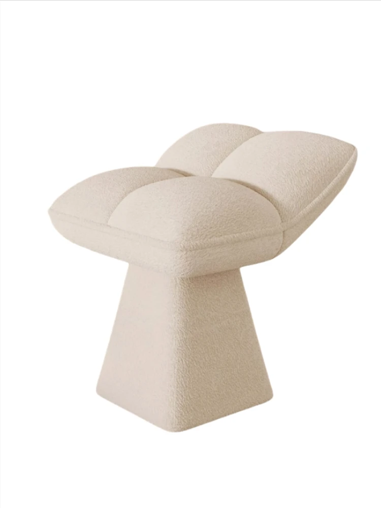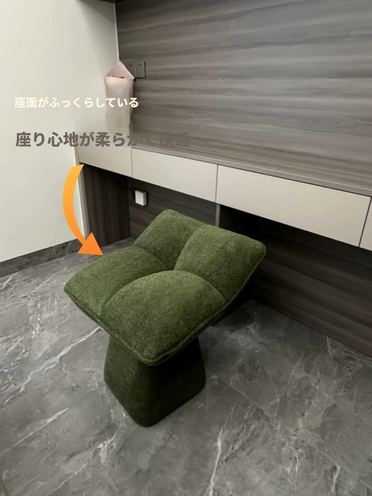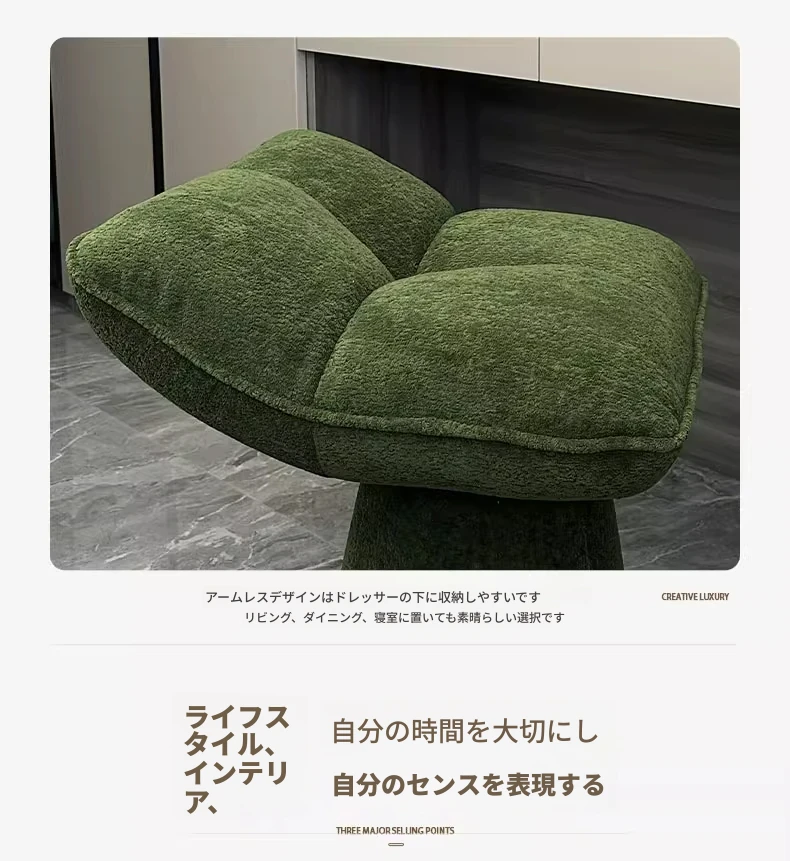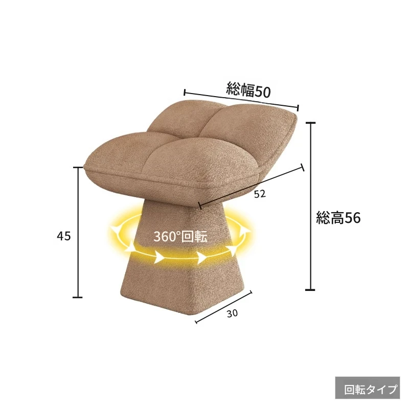 クリームカラーのデザイン化粧台スツール - 回転式で便利な家庭用メイクアップ椅子!寝室やドレッサーにぴったりのオシャレな靴替えスツール。快適さとスタイルを両立させた一品です!