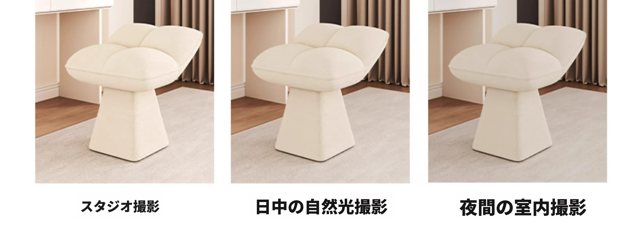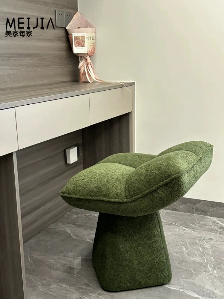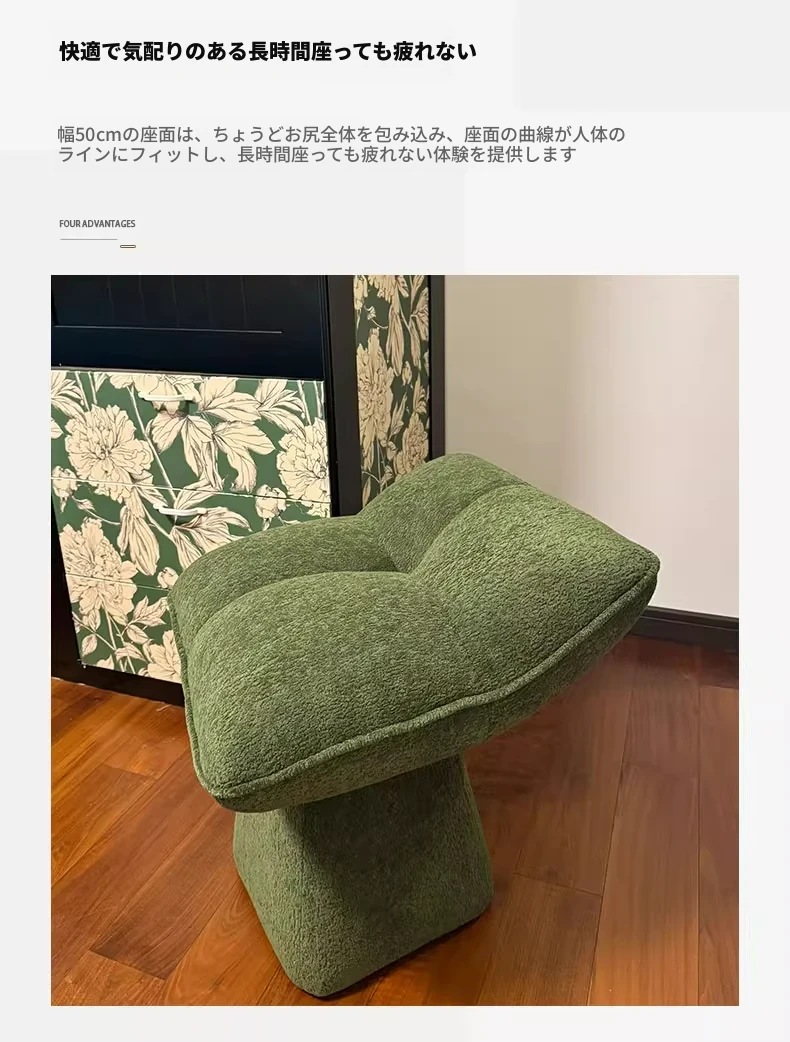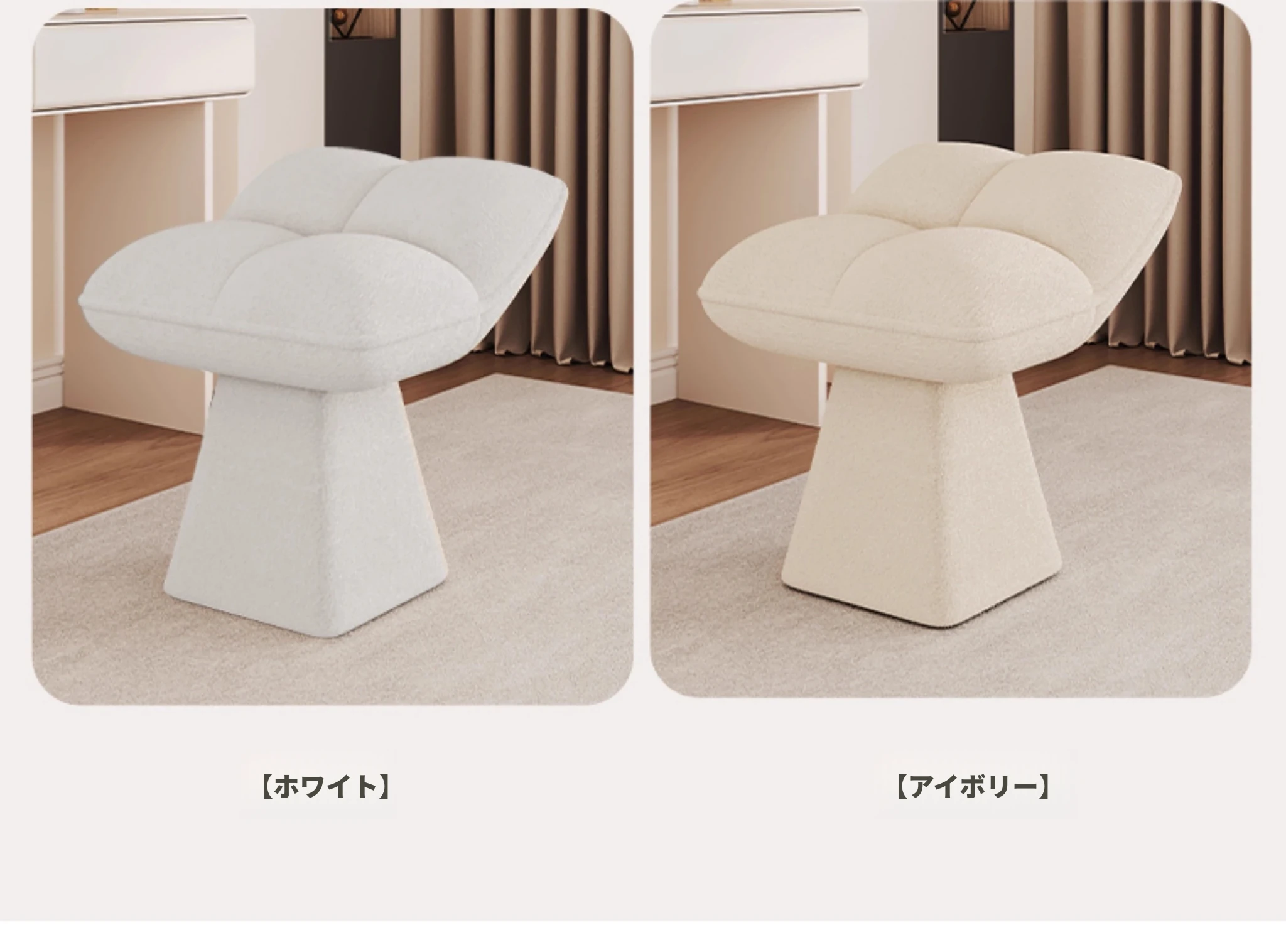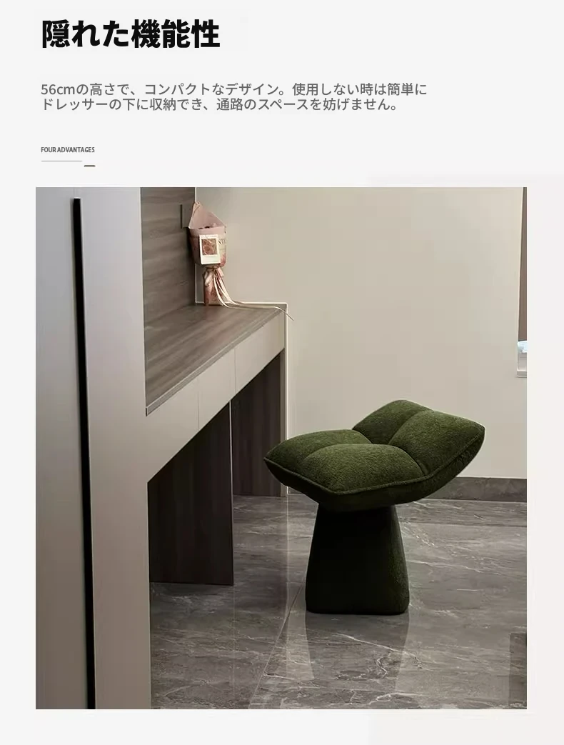 クリームカラーのデザイン化粧台スツール - 回転式で便利な家庭用メイクアップ椅子!寝室やドレッサーにぴったりのオシャレな靴替えスツール。快適さとスタイルを両立させた一品です!