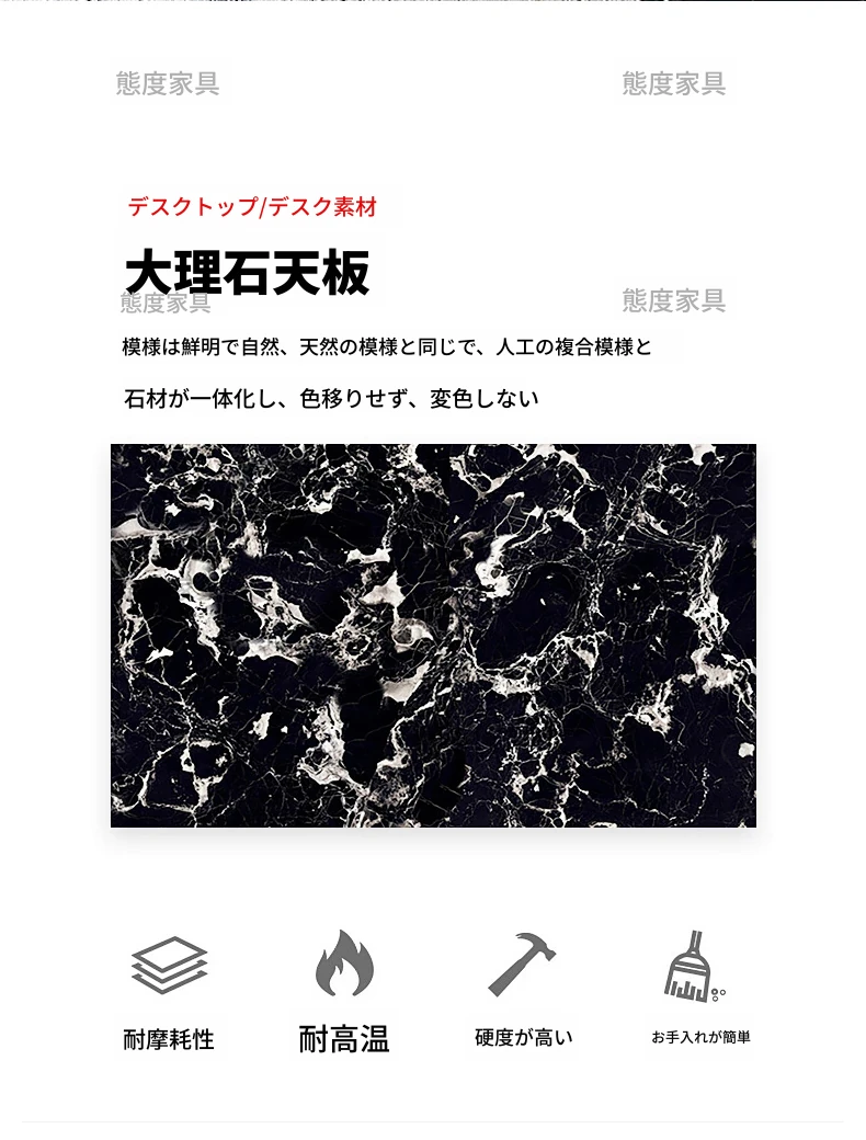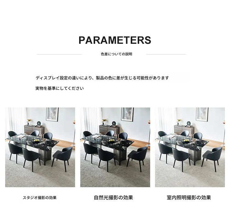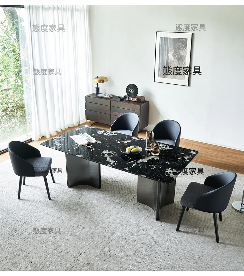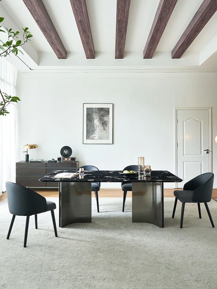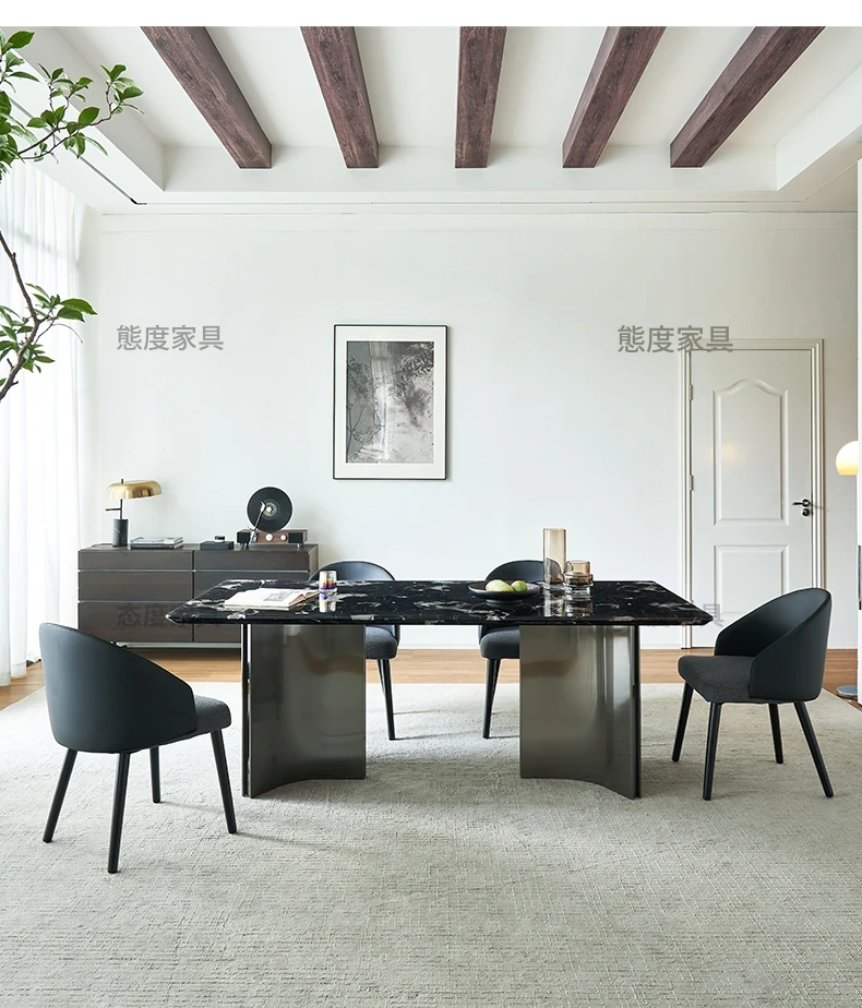 高級イタリアンデザインの黒バラ大理石ダイニングテーブルセット - シンプルでエレガントな長方形、狭いスペースにも最適なデザイナーズスタイル!あなたの家に洗練された雰囲気をプラスします。
