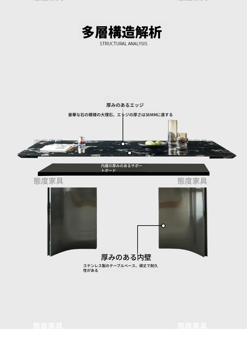 イタリアン大理石ダイニングテーブル 雫型デザイン 軽やかなラグジュアリー感 シンプルで洗練された印象 大型住宅に最適なデザイナーズテーブル 高級感あふれる別荘用ダイニングテーブル