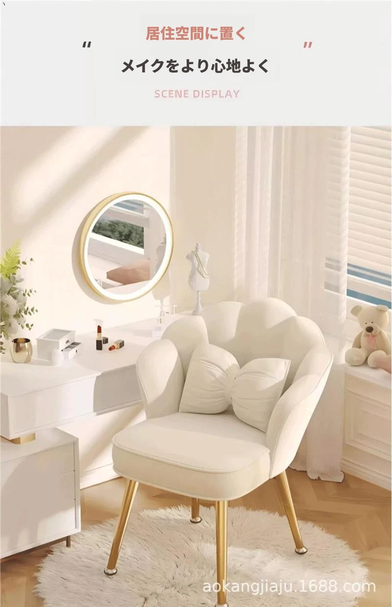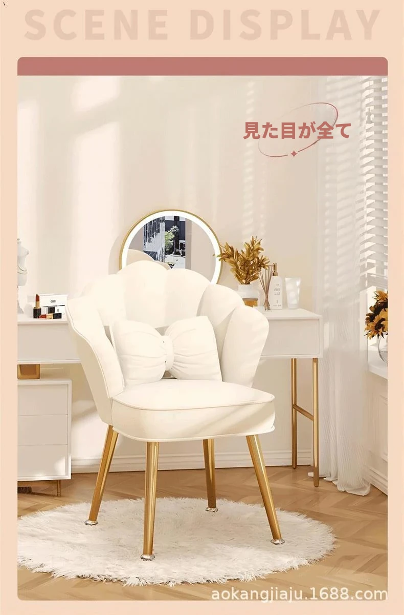 高級感溢れるファブリック製メイクアップチェア - おしゃれな女性のための自宅用背もたれ付き椅子、寝室やドレッサーに最適なギフトボックス入り!