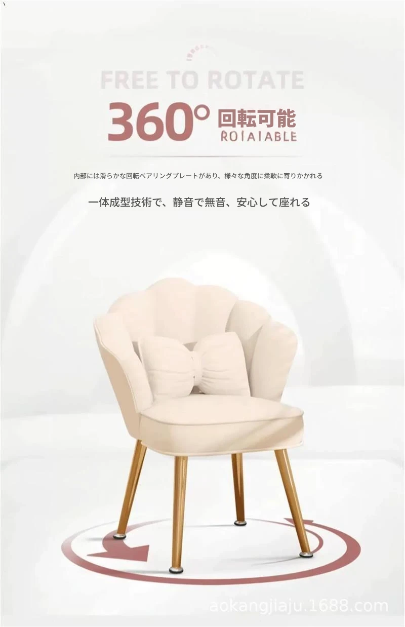 【360°回転可能】少女ピンク-無垢材の脚(蝶のクッション付き)