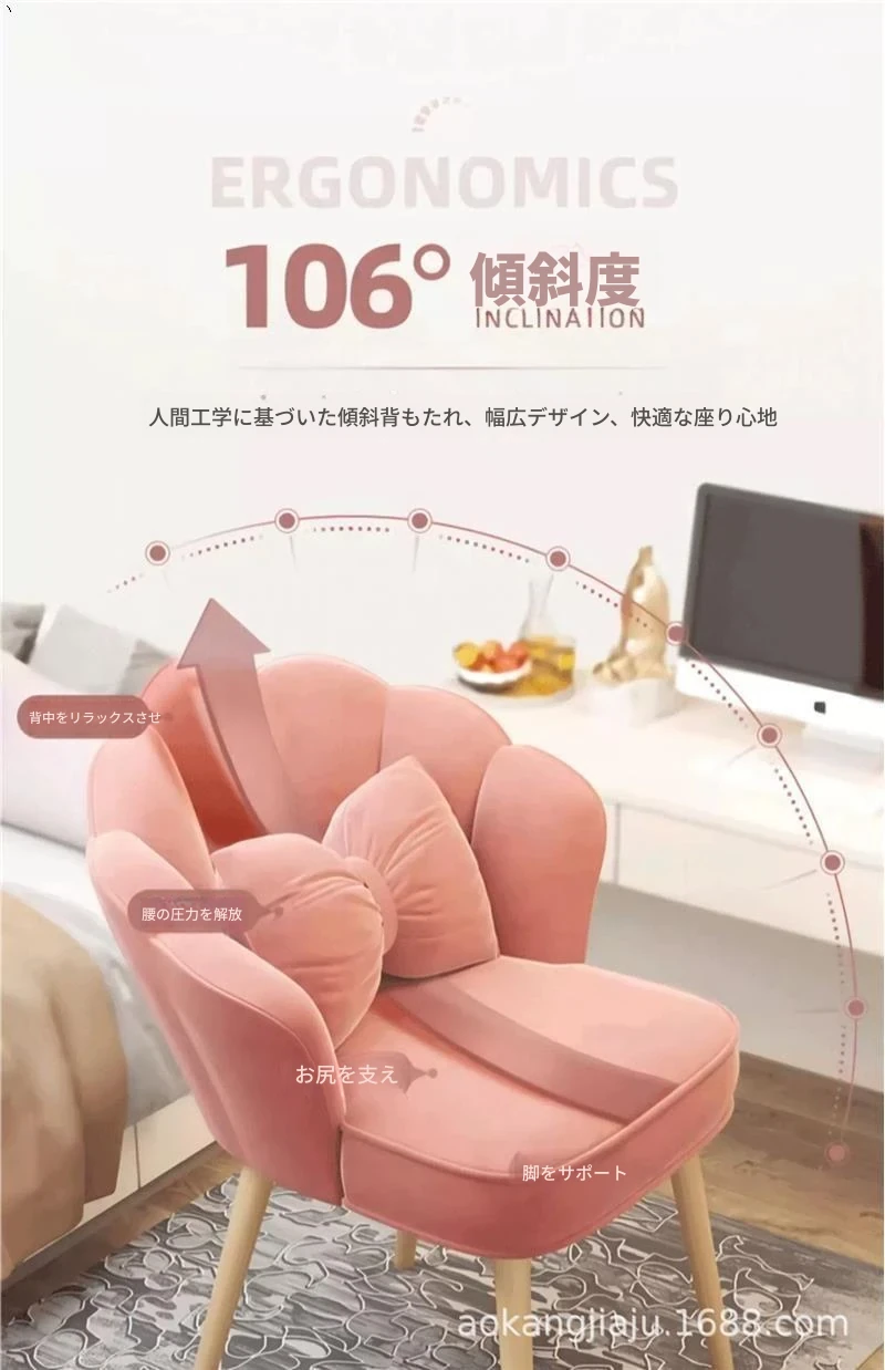 少女ピンク-無垢材の脚(蝶のクッション付き)