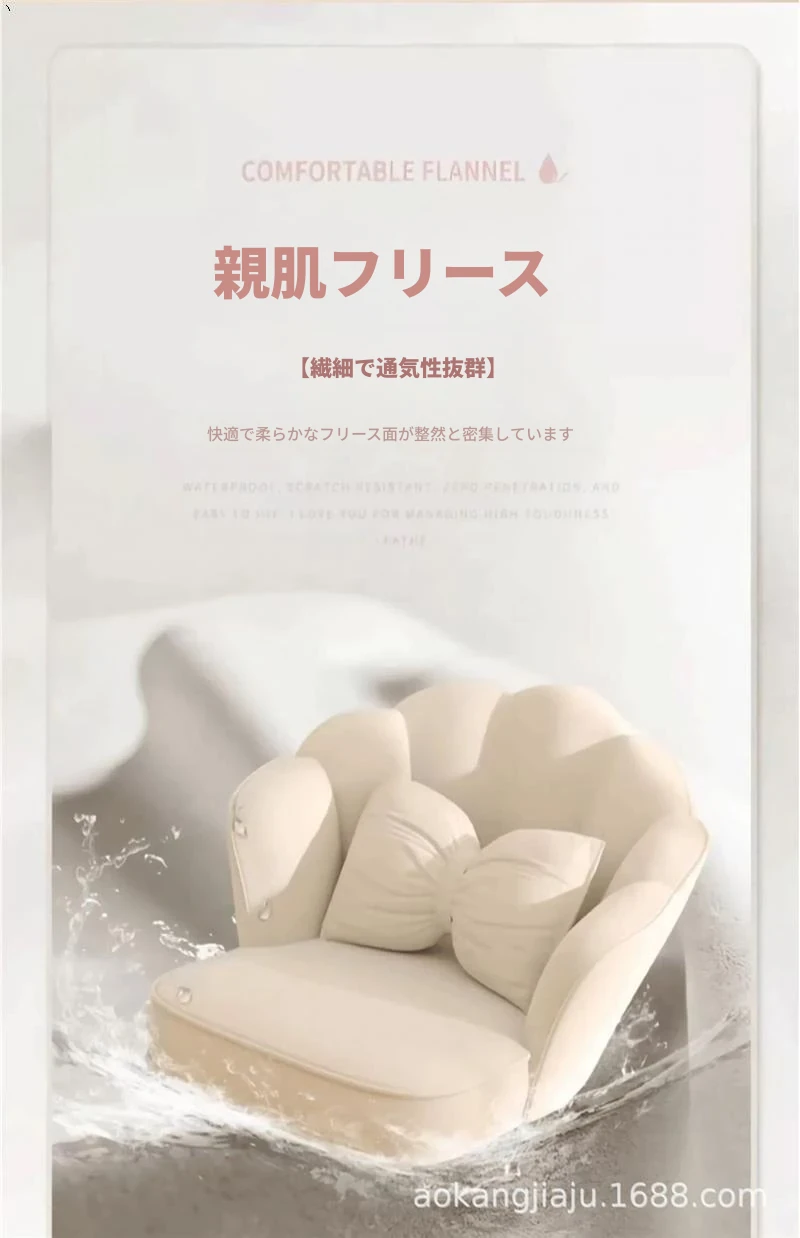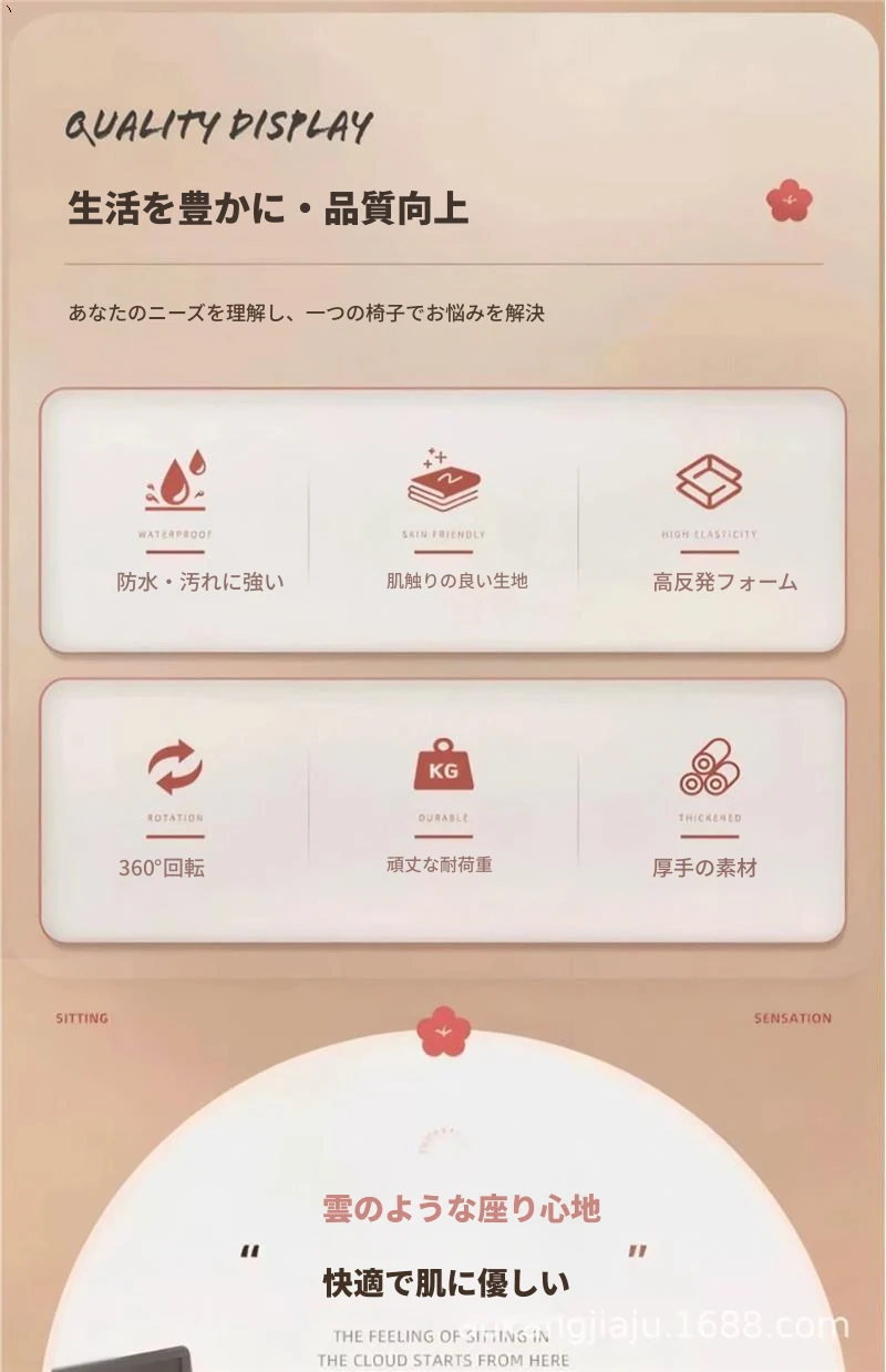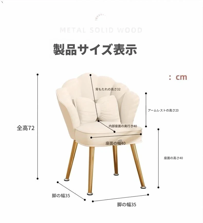 【360°回転可能】アイボリー-無垢材の脚(蝶のクッション付き)