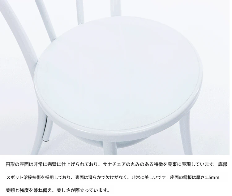 結婚式・イベントに最適!アイアン製サナチェア - シンプルなデザインの金属製円形スツール。インダストリアルスタイルのレストランチェア、ホワイトカラーで洗練された空間を演出します。