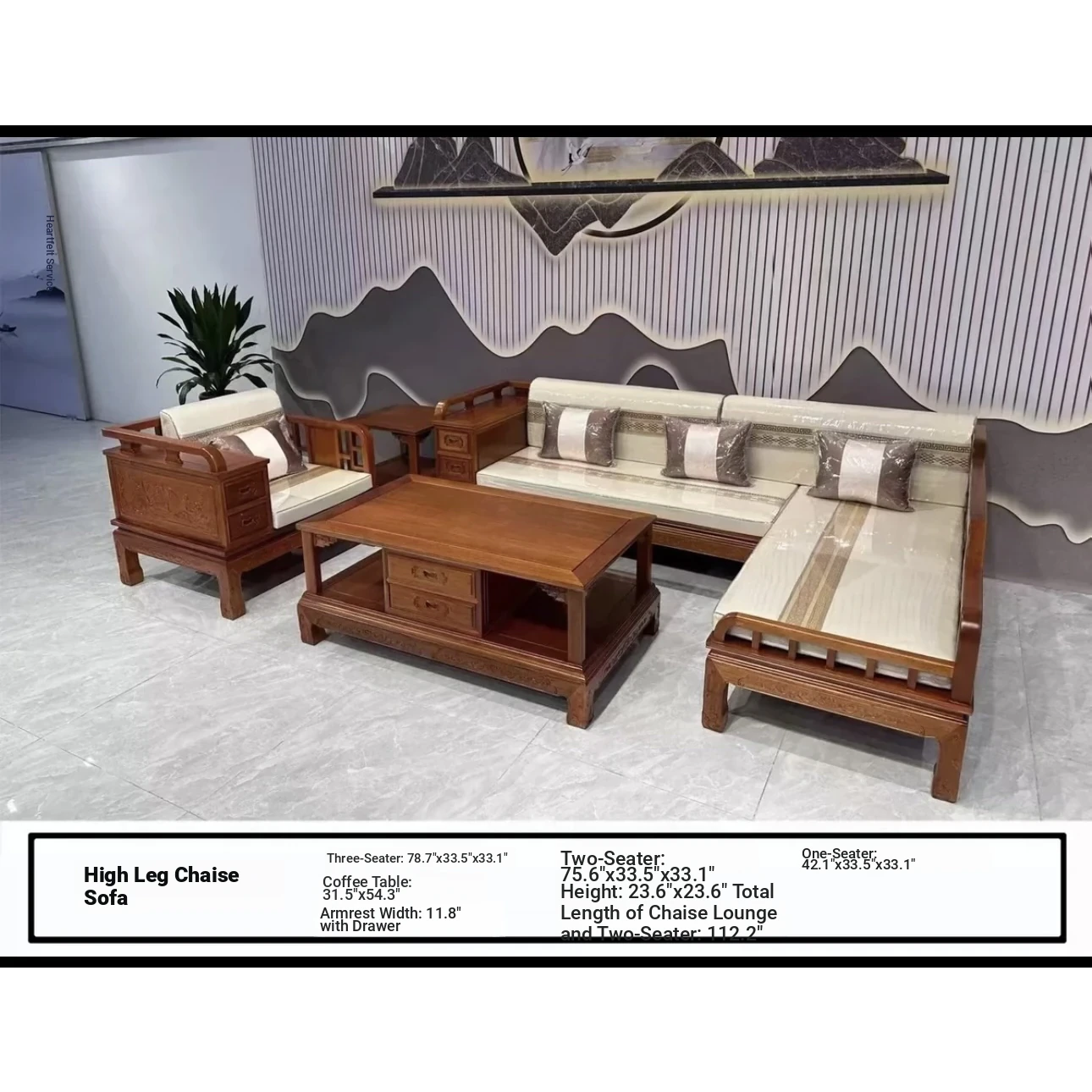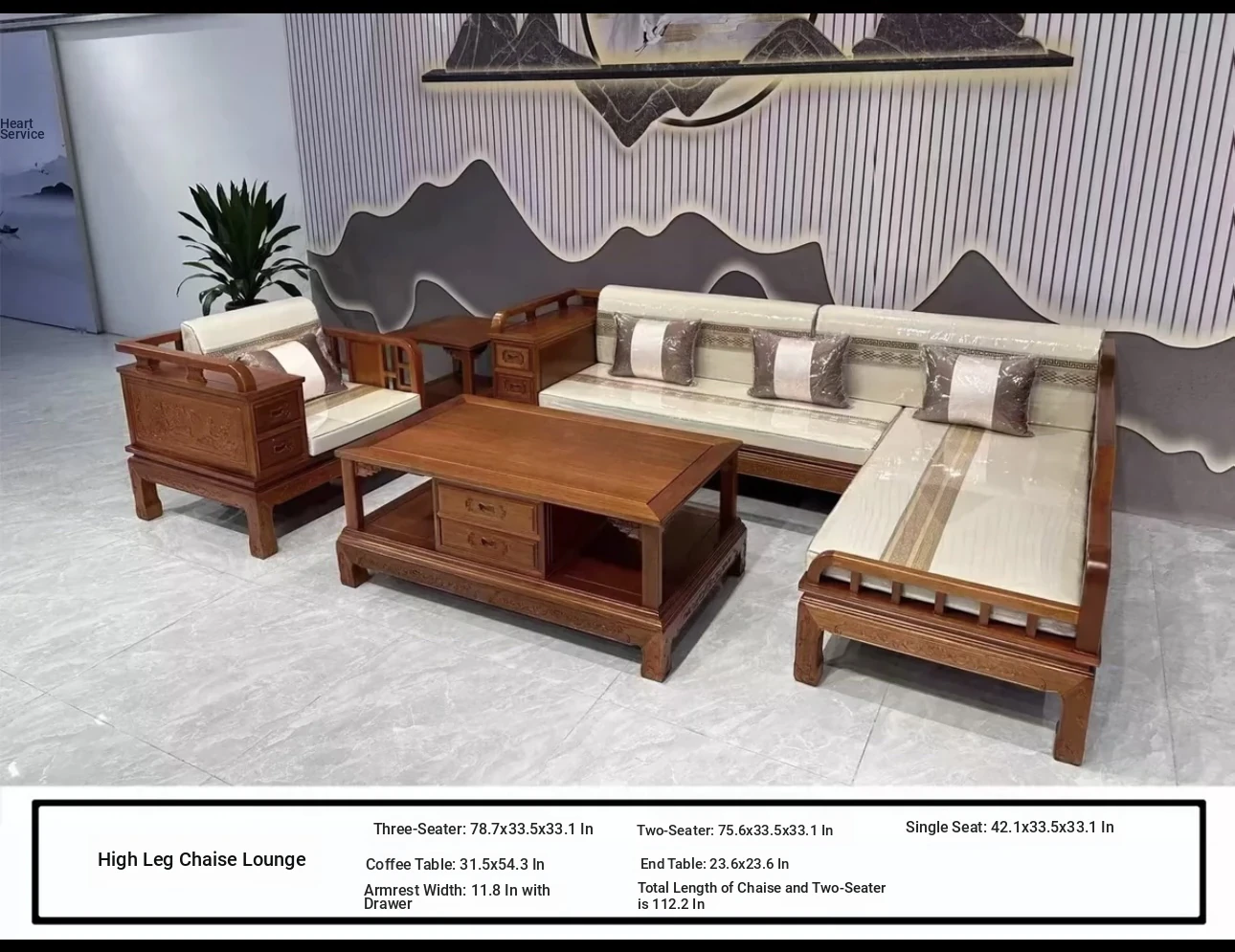Elegant Rosewood Corner Sofa Set - Modern Chinese Style Solid Wood Chaise Lounge Furniture for Living Room - Complete Assembly Included