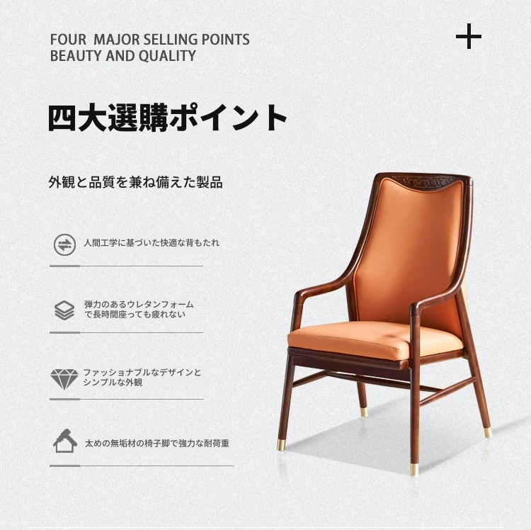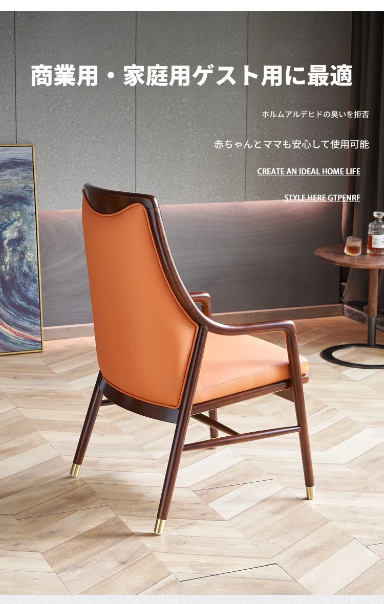 高級感溢れる天然木製レストランチェア - アームレスト付きのデザイン性抜群のハイバックチェア。営業所やデザイナーの打ち合わせにも最適!家庭用にもぴったりな上質な合皮チェアで、快適な食事時間をお楽しみください。