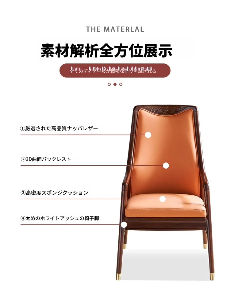 高級北欧スタイルの本革ダイニングチェア - 一級牛皮使用、モダンでシンプルなデザインのソフトパック、家での贅沢なひとときを演出する完璧な選択!