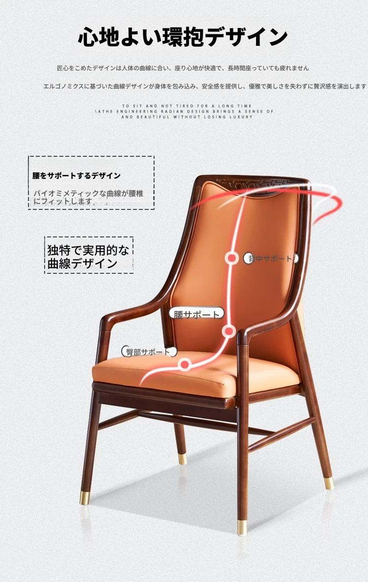 イタリアンミニマル高級無垢材ダイニングチェア|家庭用・背もたれ付き・別荘デザイン・デザイナー椅子・オーナー用ティーチェア・モデルルーム・書斎用チェア【洗練されたスタイルで、居心地の良い空間を演出】