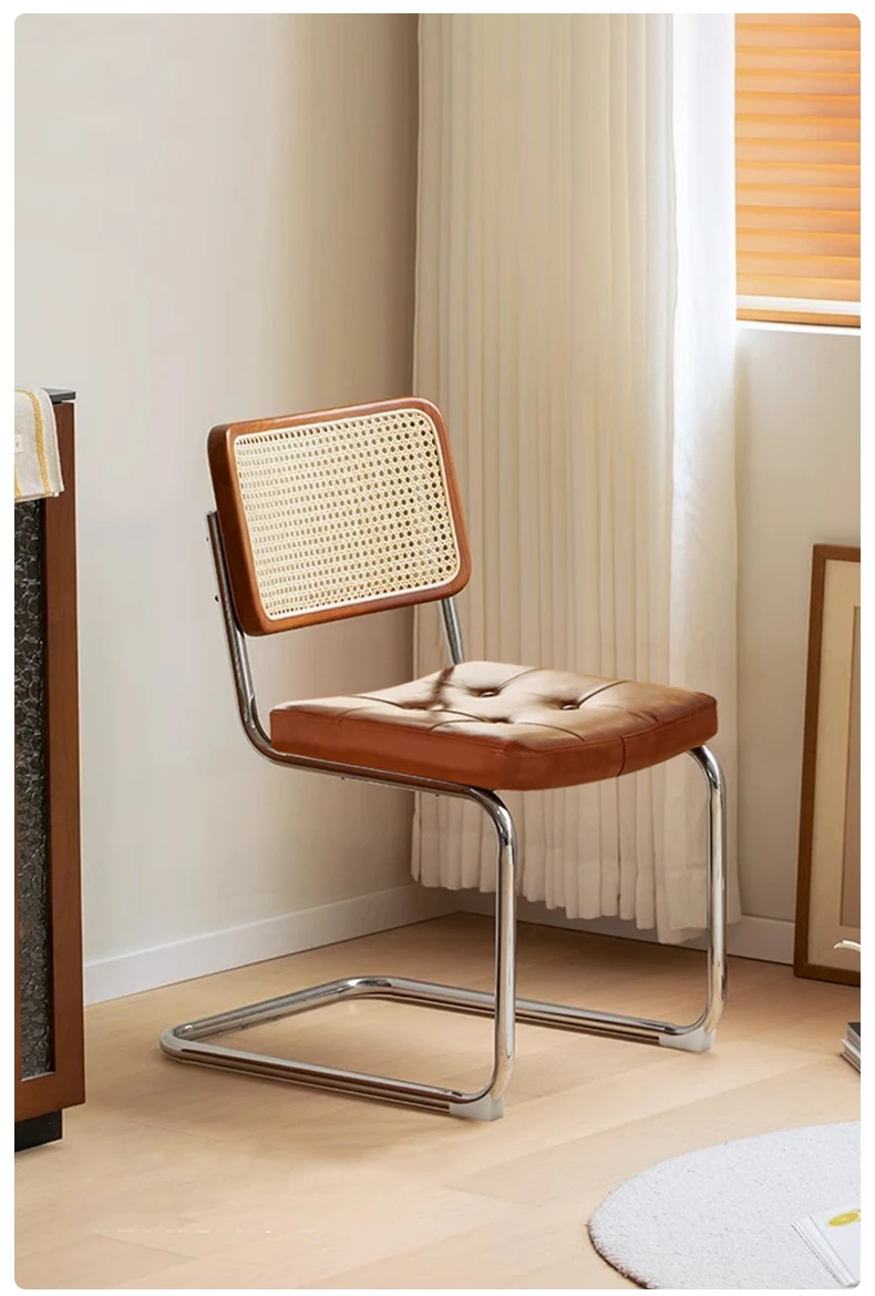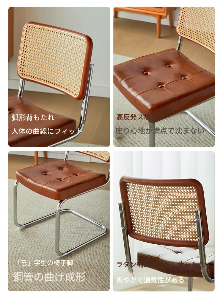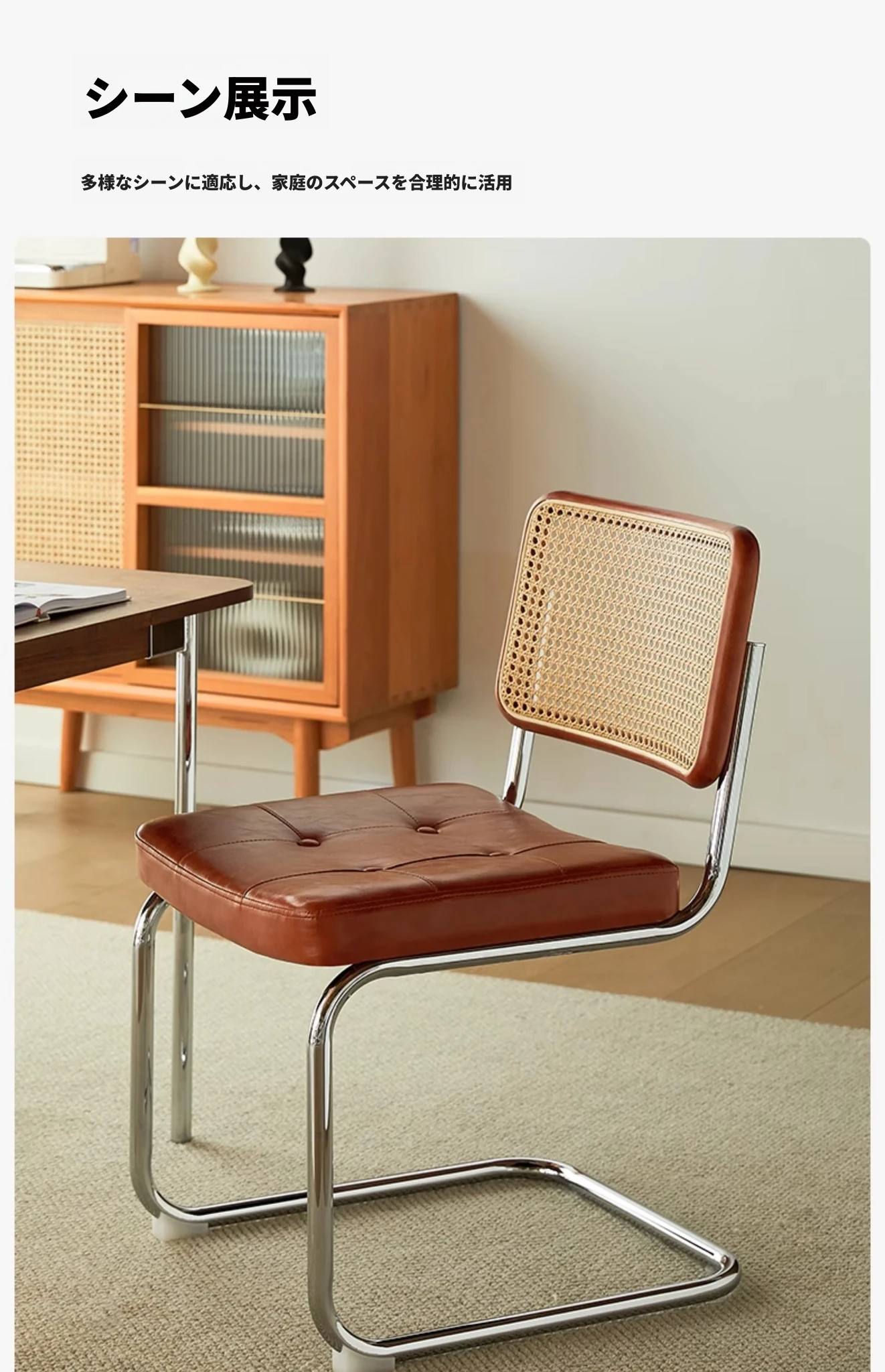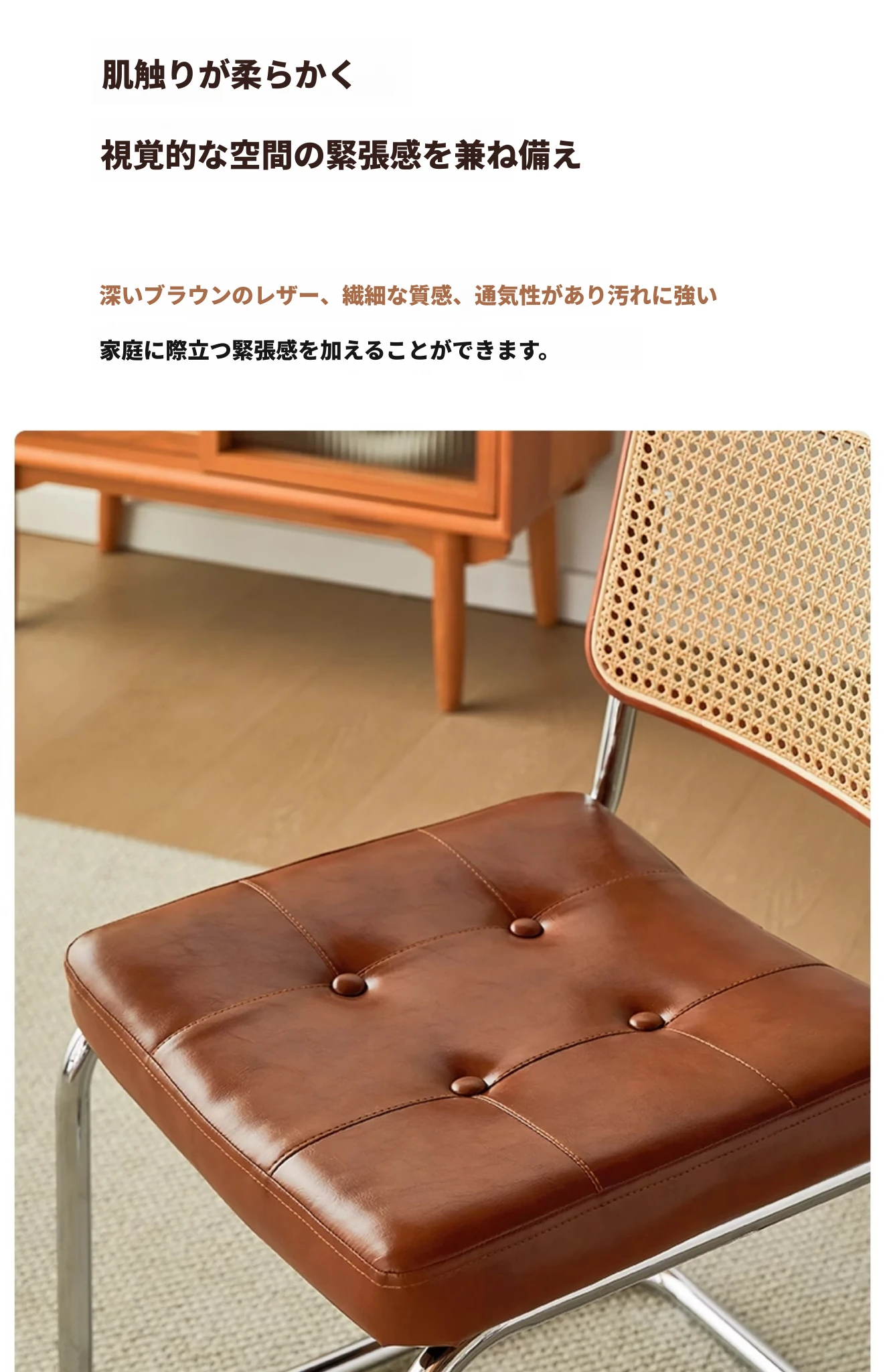 さくらんぼ色の無垢材の背もたれ+グロスオイルレザーのブラウン
