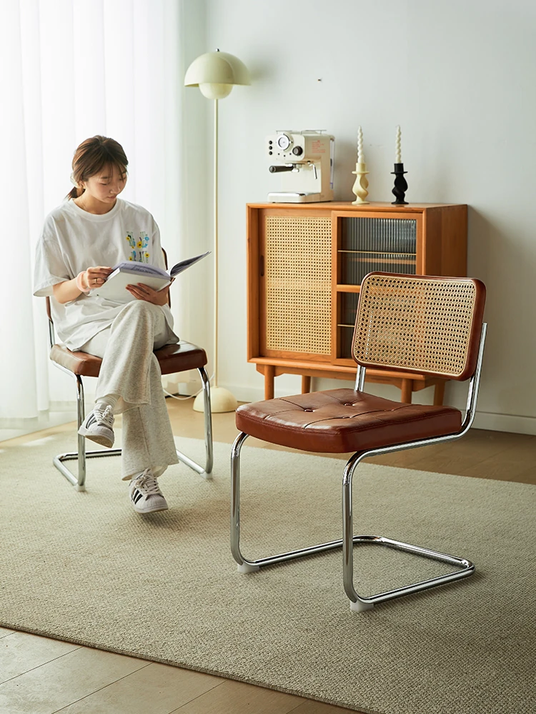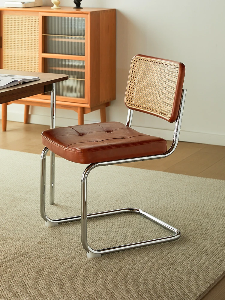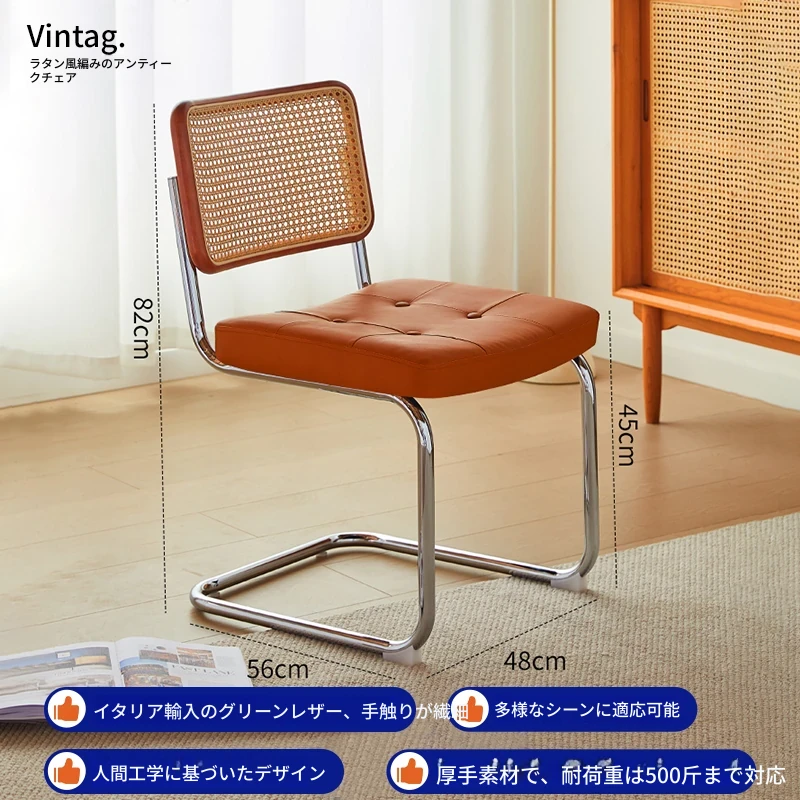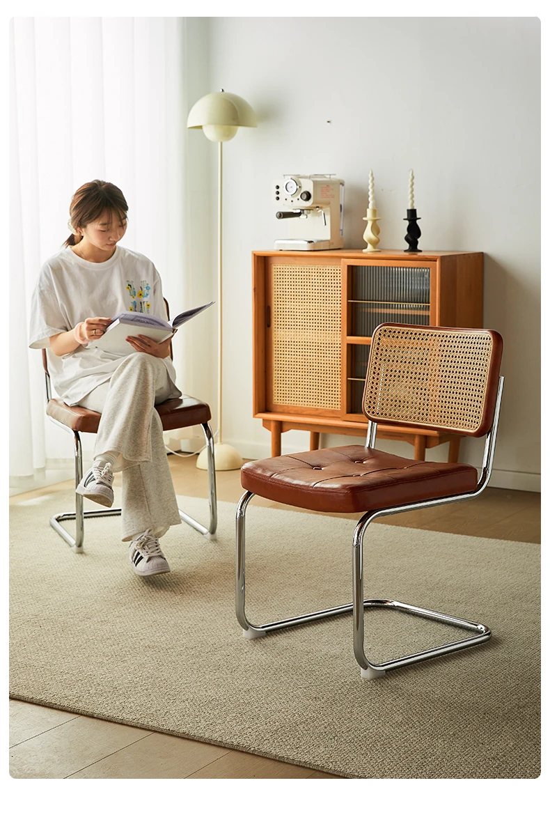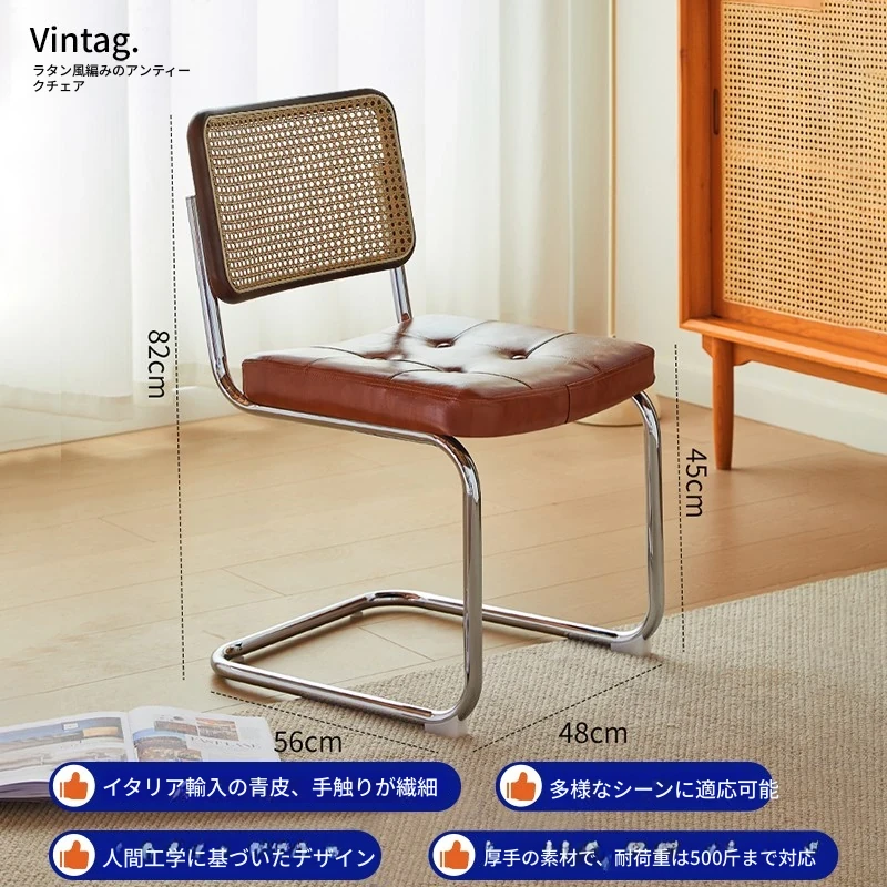 さくらんぼ色の無垢材の背もたれ+グロスオイルレザーのブラウン