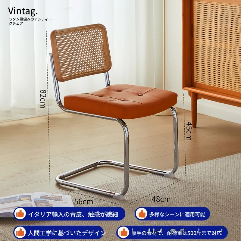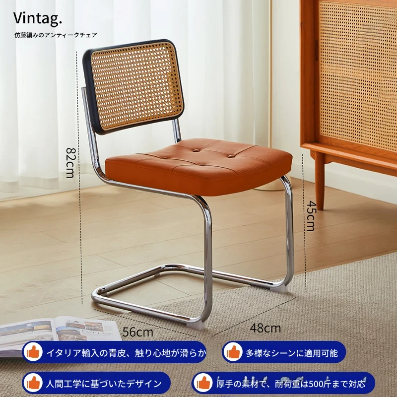 くるみ色の無垢材の背もたれ+マットオレンジのクッション
