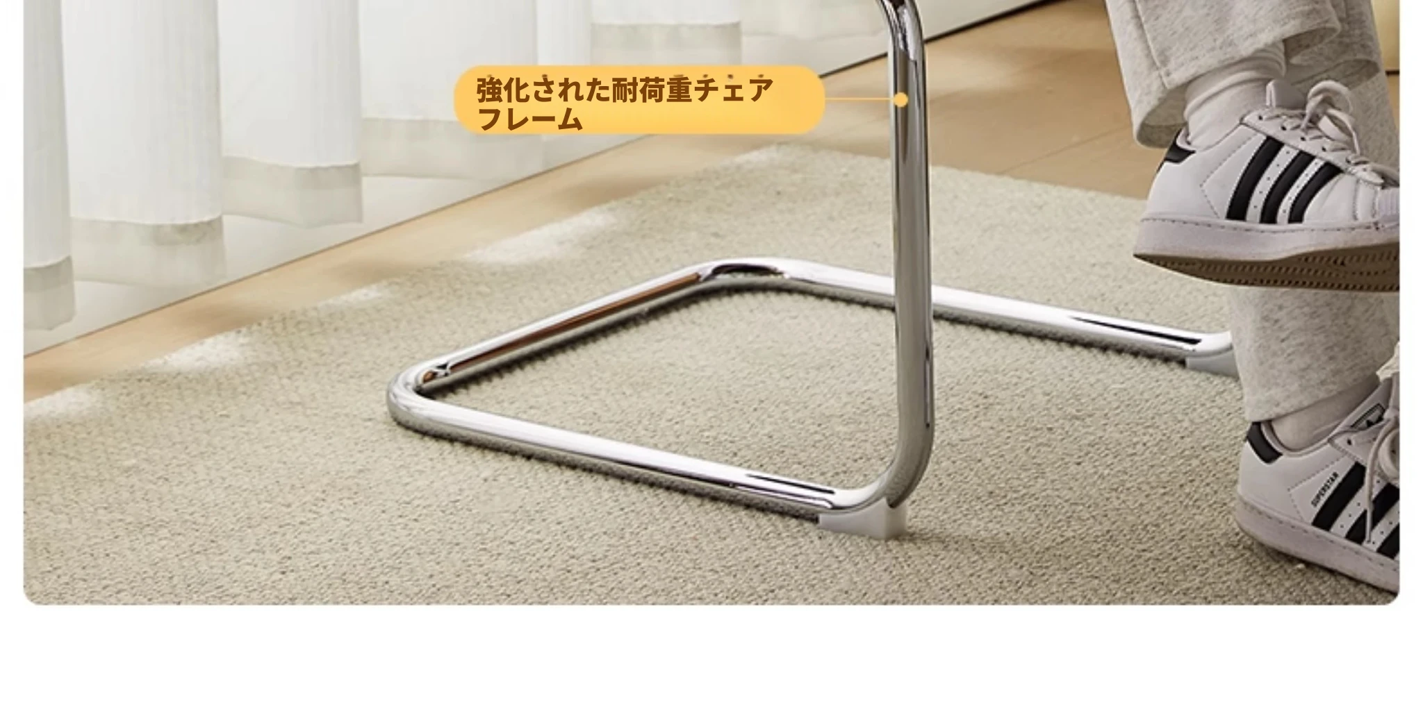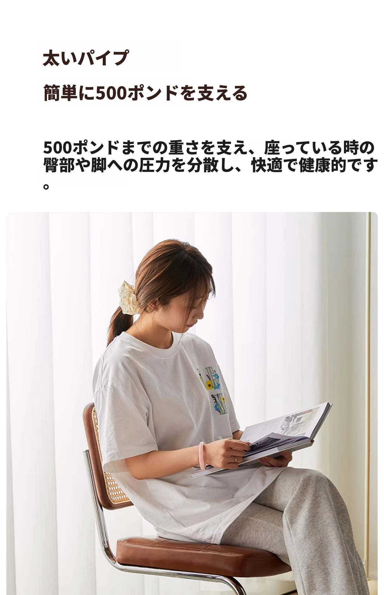 ナチュラルウッド色の無垢材の背もたれ+グロスオイルレザーのホワイト