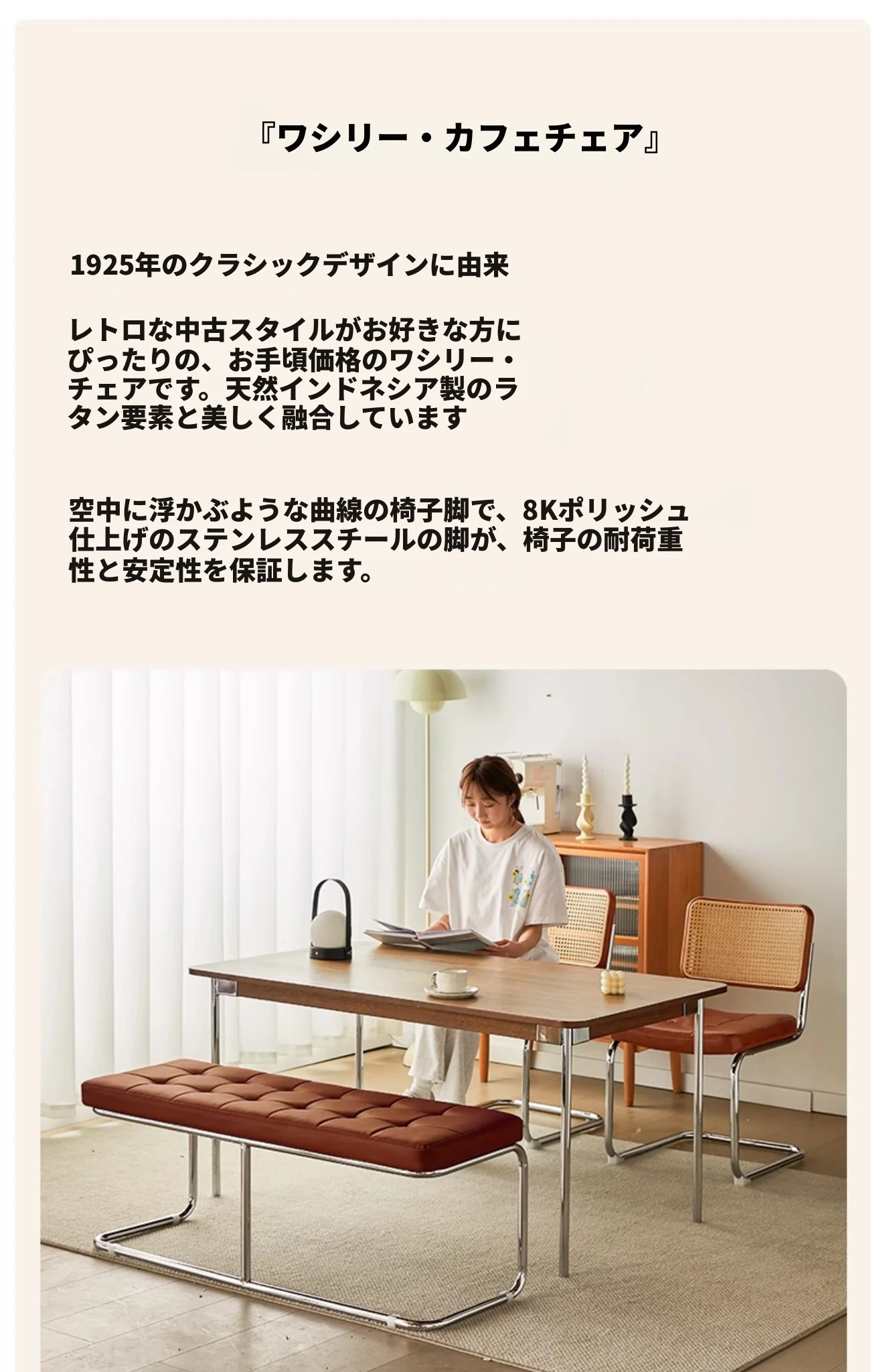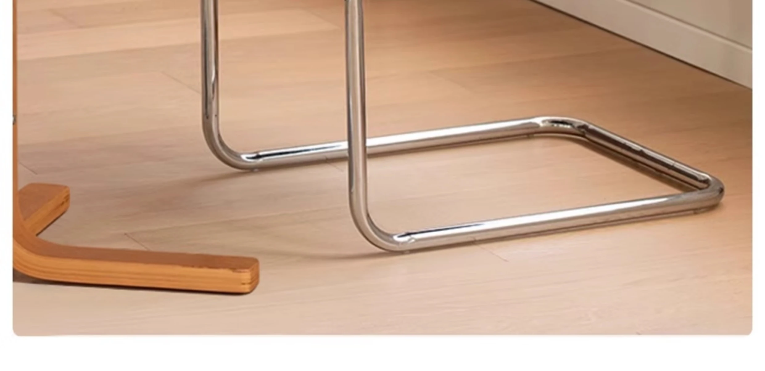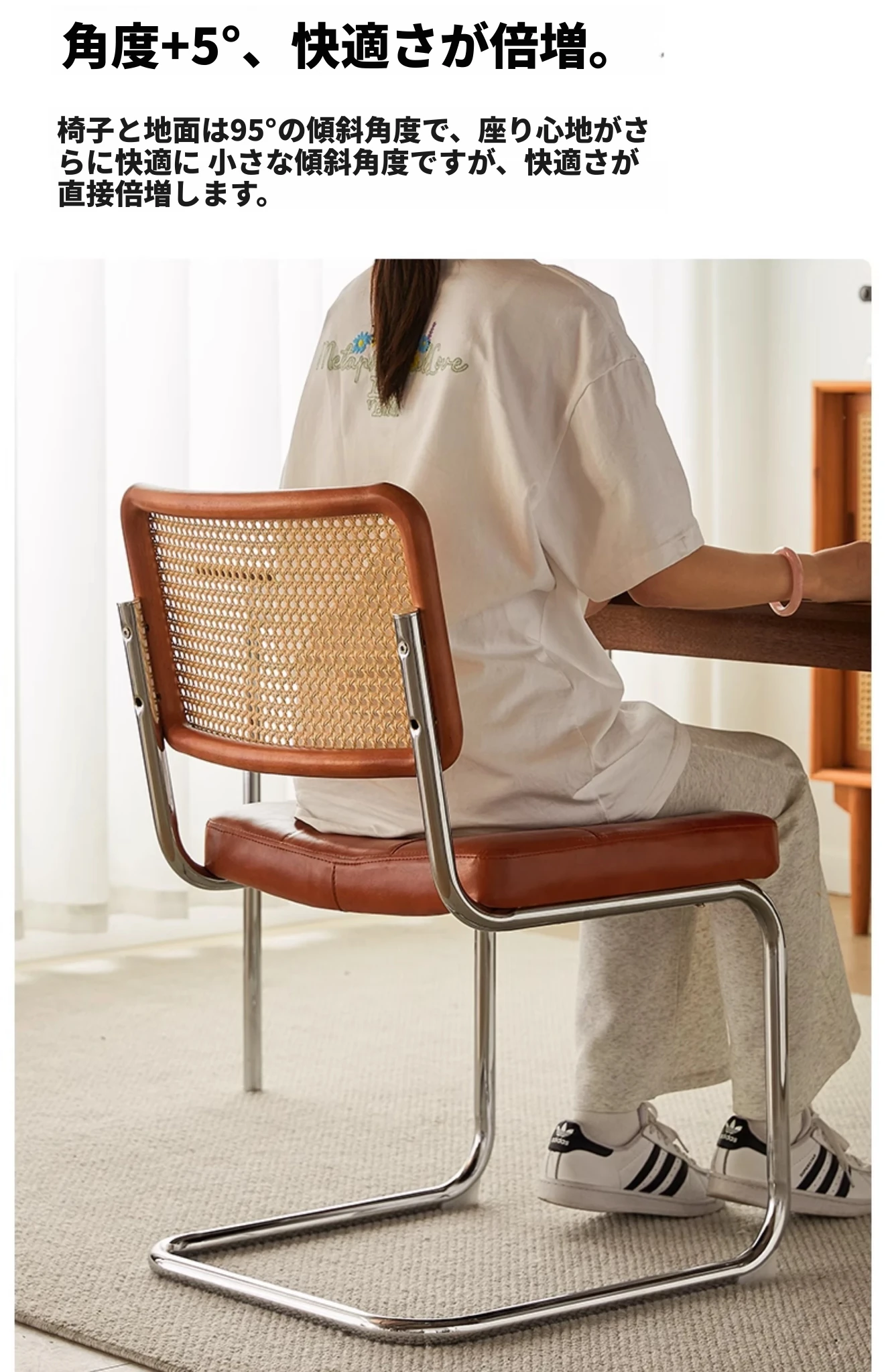 さくらんぼ色の無垢材の背もたれ+グロスオイルレザーのホワイト