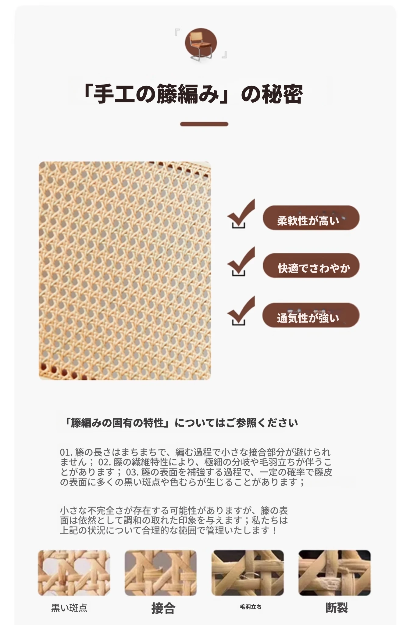 くるみ色の無垢材の背もたれ+マットダークブラウンのクッション