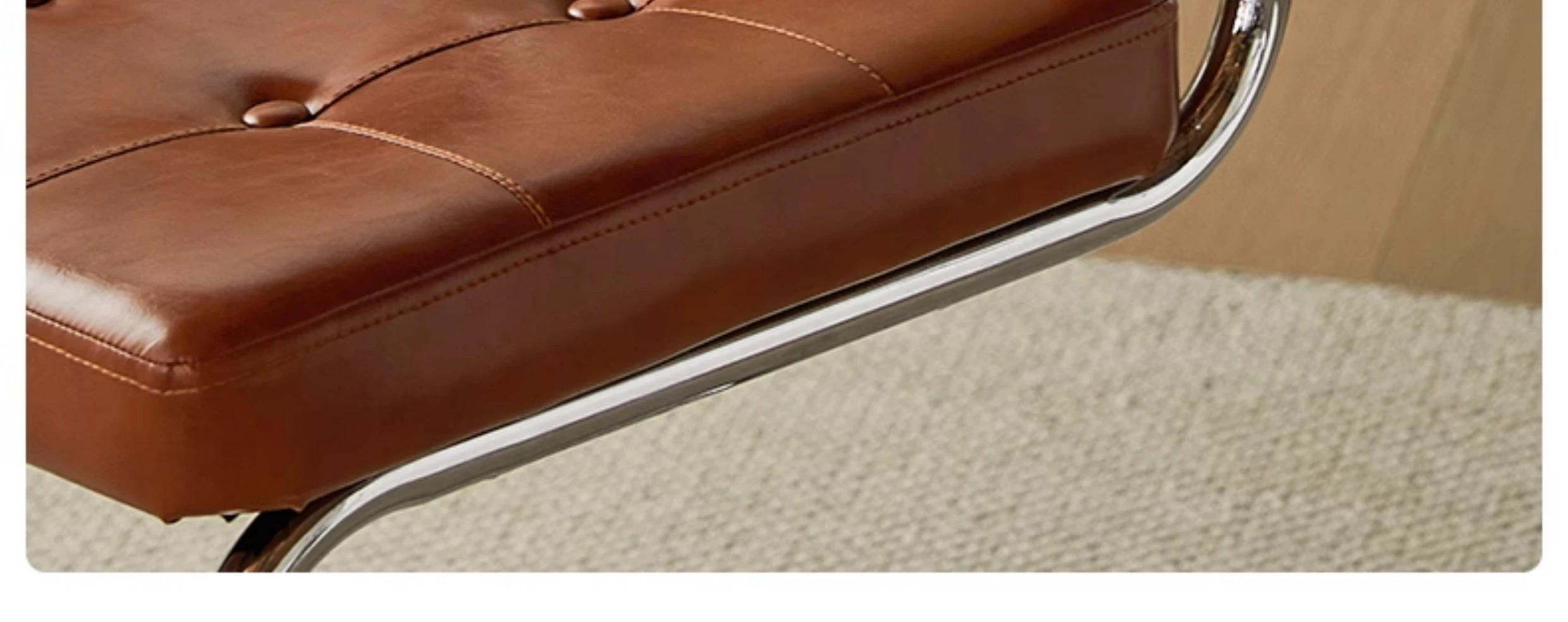 くるみ色の無垢材の背もたれ+グロスオイルレザーのブラウン