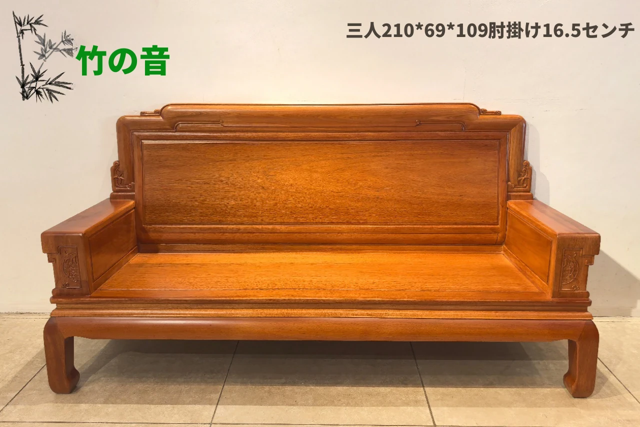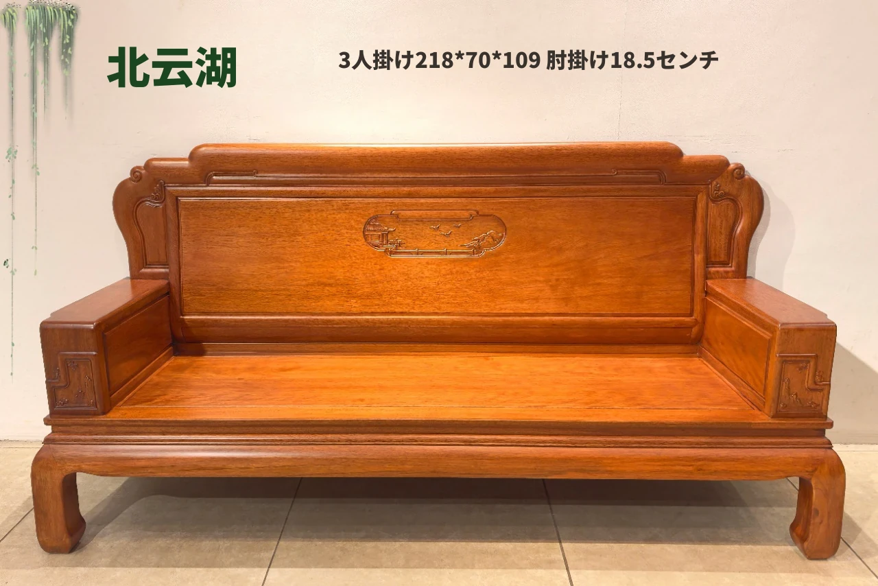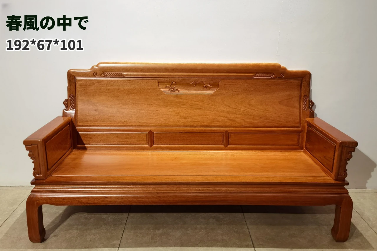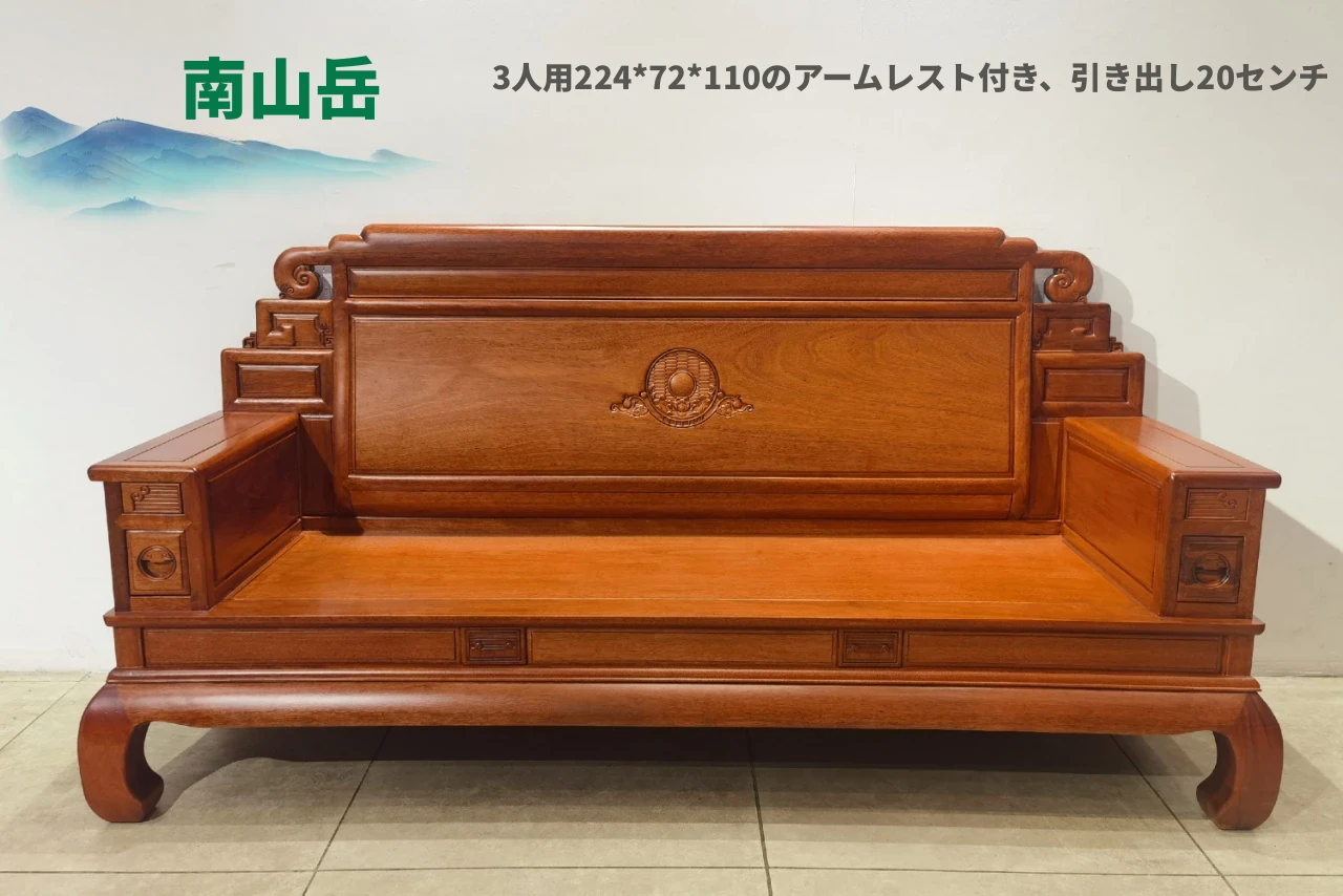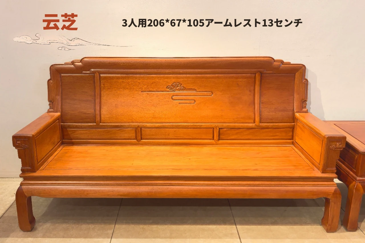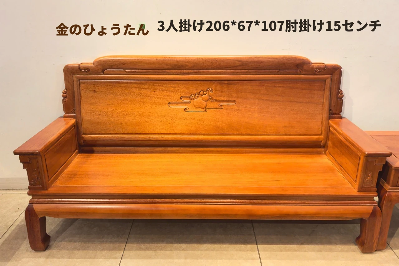 高級紅木ソファ - パイナップルウッド製の彫刻デザイン、シンプルでエレガントな3人掛け長椅子。全て天然の花梨木を使用した、リビングルームにぴったりの贅沢な一品。