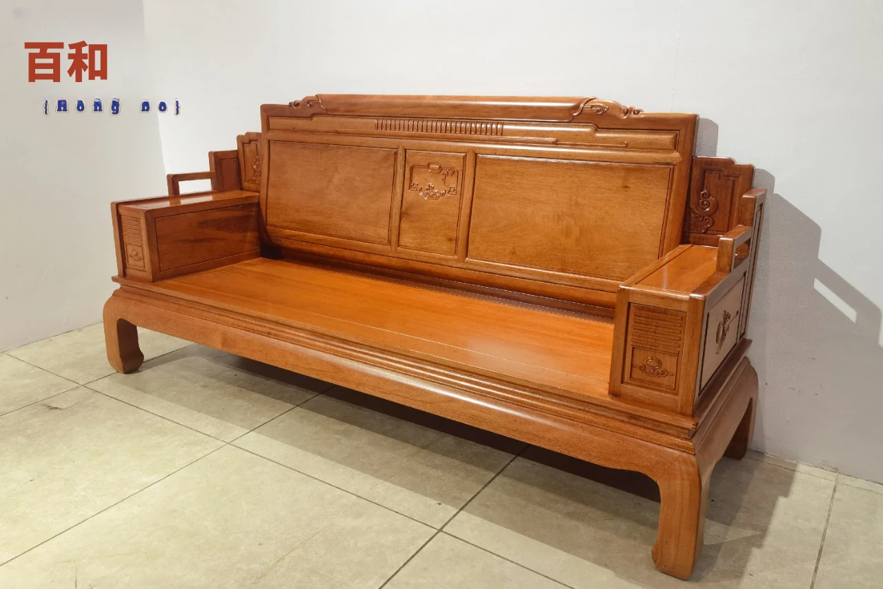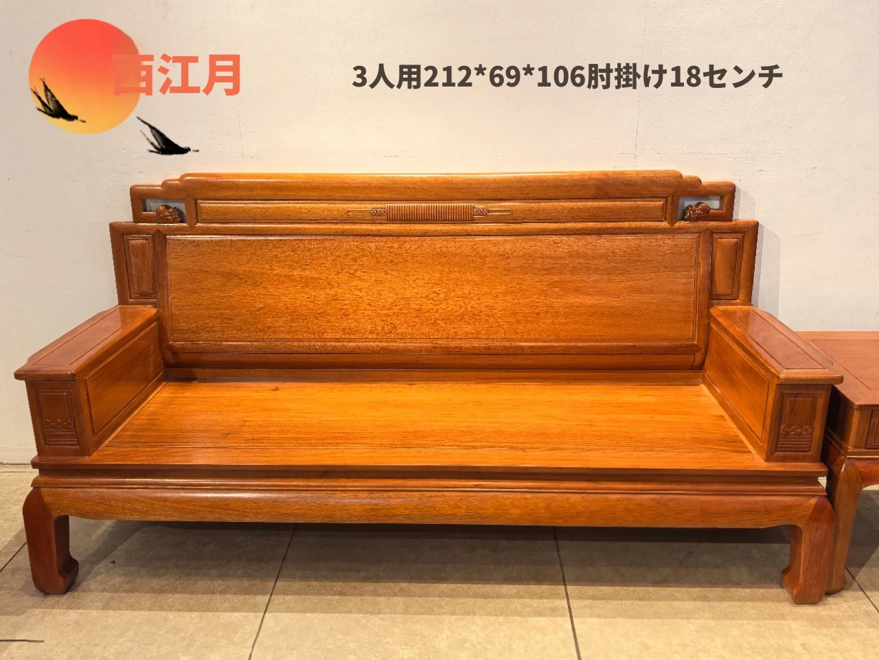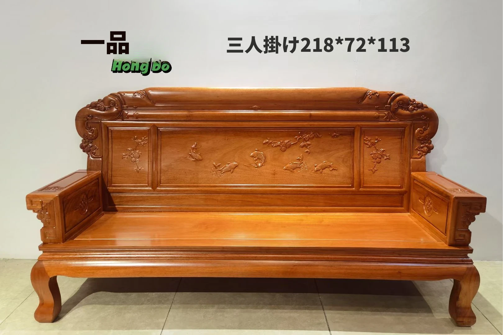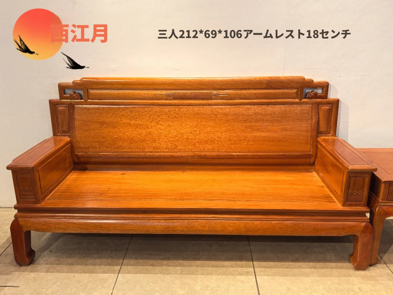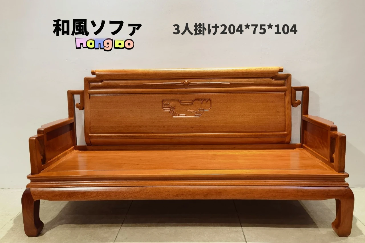 高級紅木ソファ - パイナップルウッド製の彫刻デザイン、シンプルでエレガントな3人掛け長椅子。全て天然の花梨木を使用した、リビングルームにぴったりの贅沢な一品。