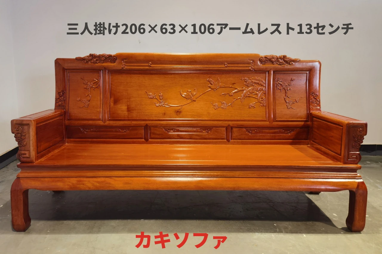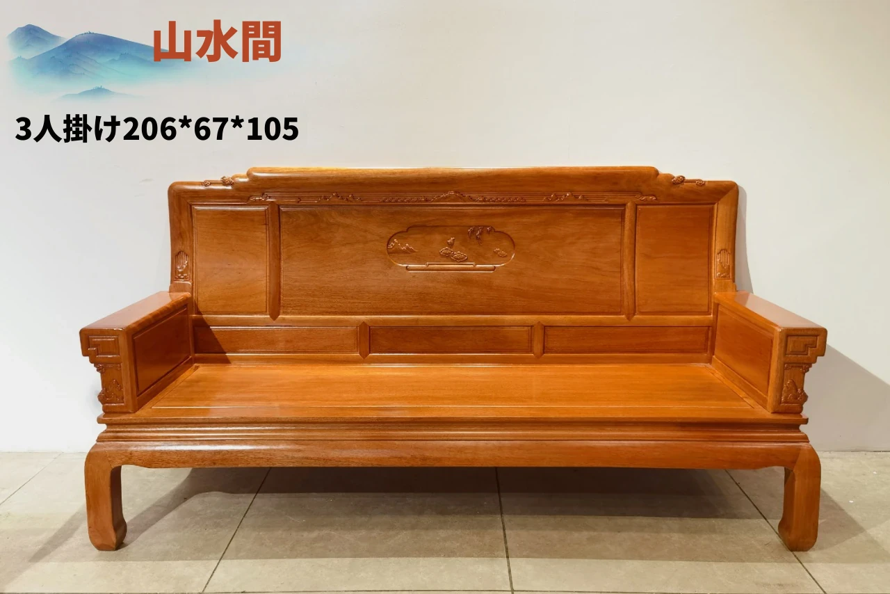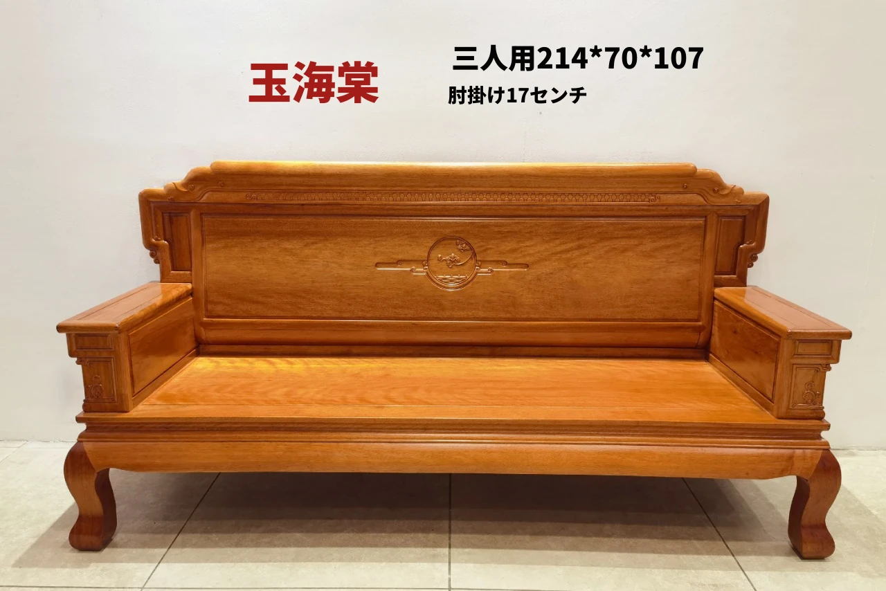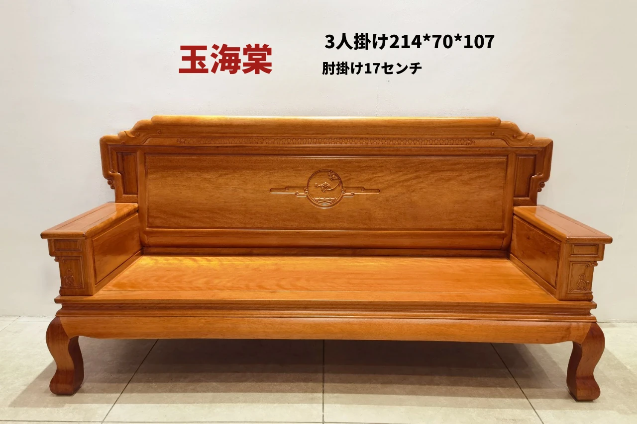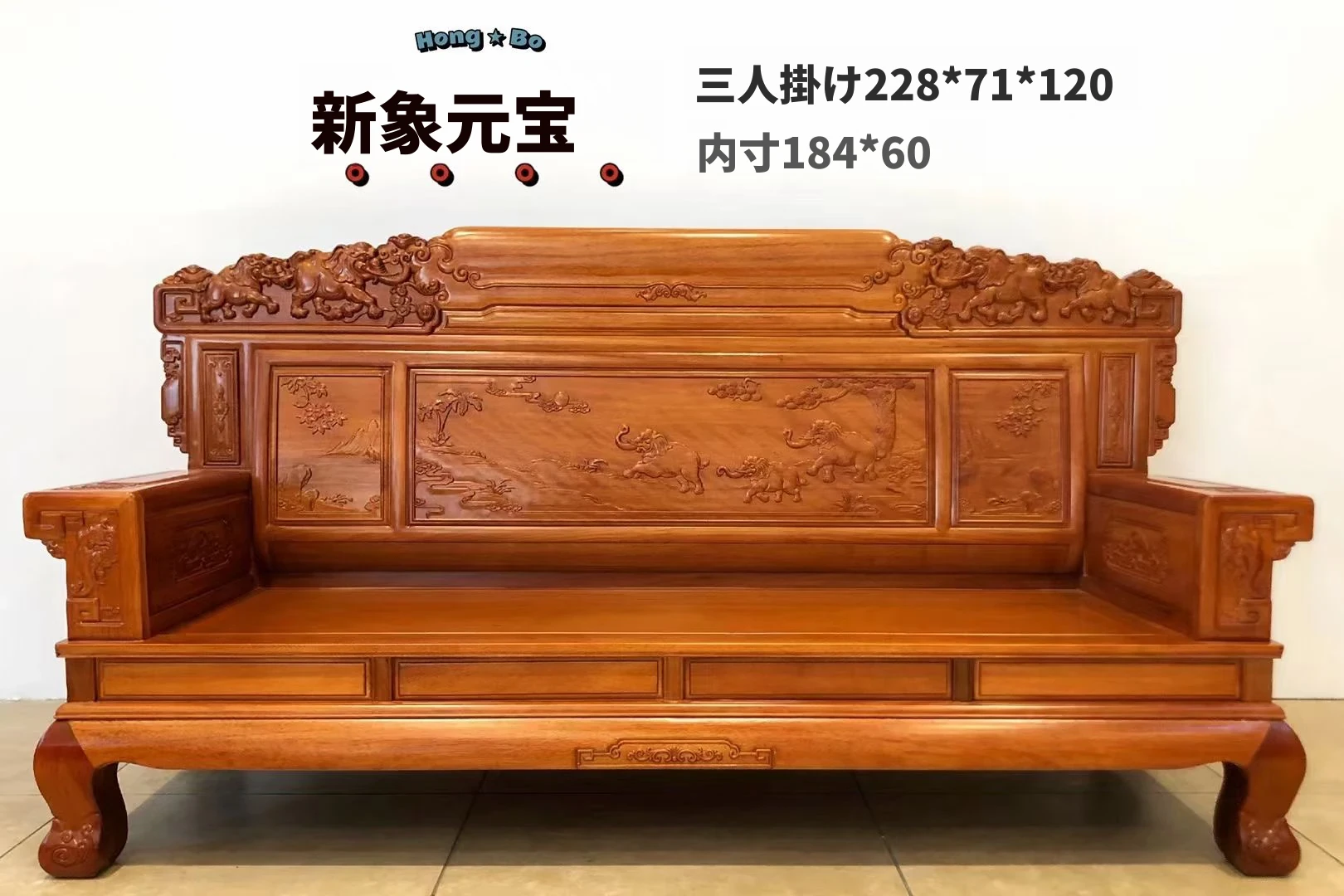 高級紅木ソファ - パイナップルウッド製の彫刻デザイン、シンプルでエレガントな3人掛け長椅子。全て天然の花梨木を使用した、リビングルームにぴったりの贅沢な一品。