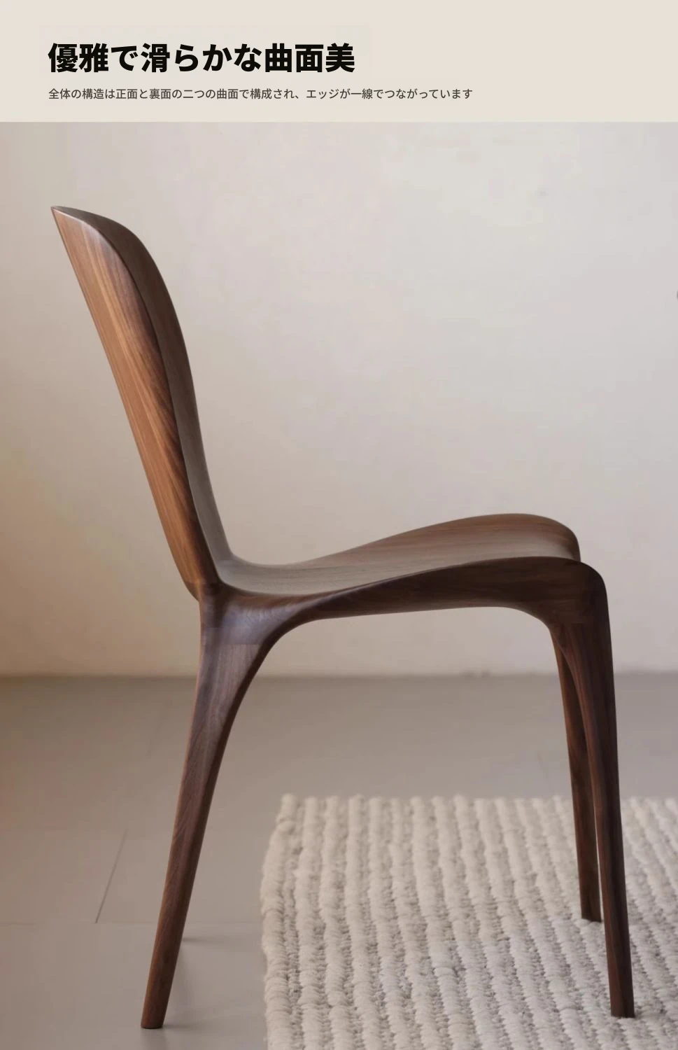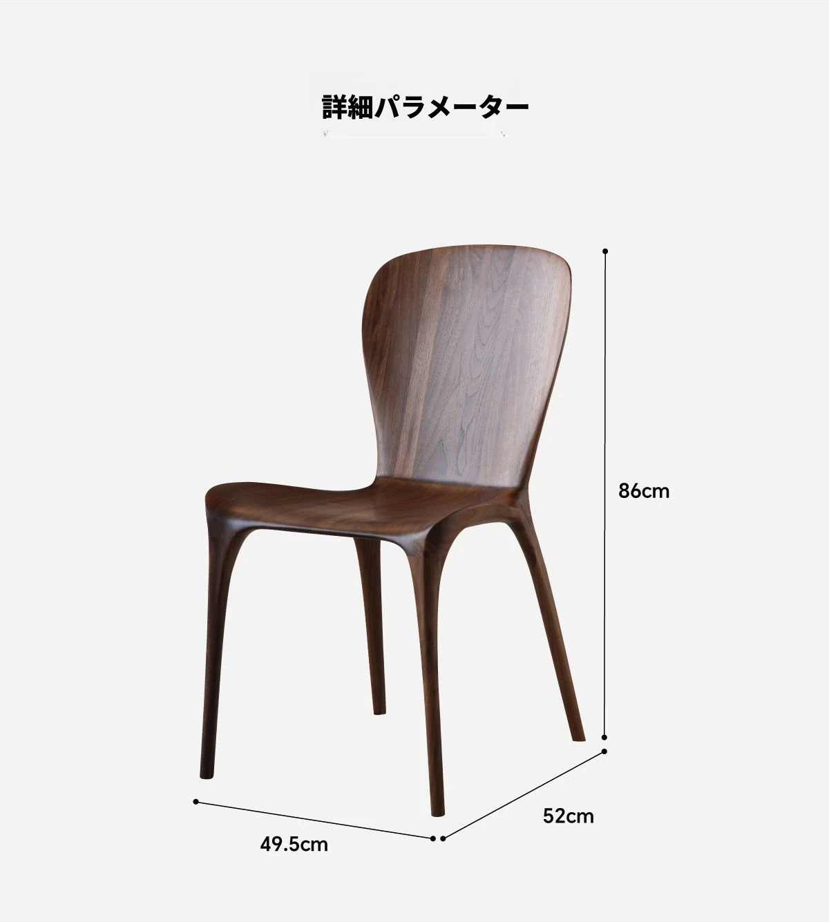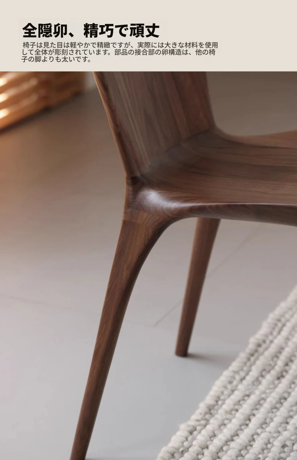 北米産ブラックウォールナット無垢材ダイニングチェア - 優れた榫接ぎ技術で作られたエレガントなユリカチェア。リラックスできる背もたれ付き、食事やティータイム、書斎にも最適な一品!