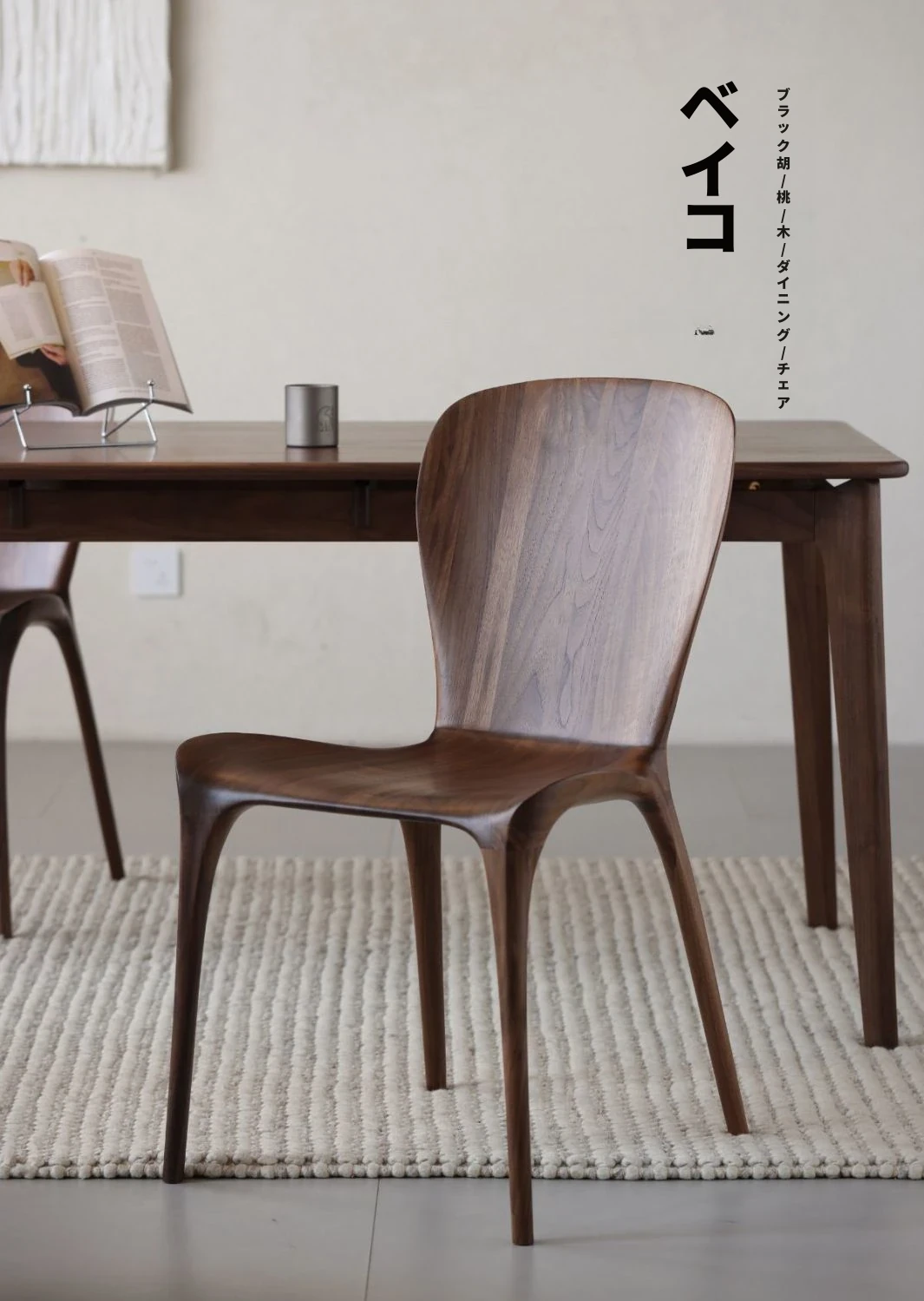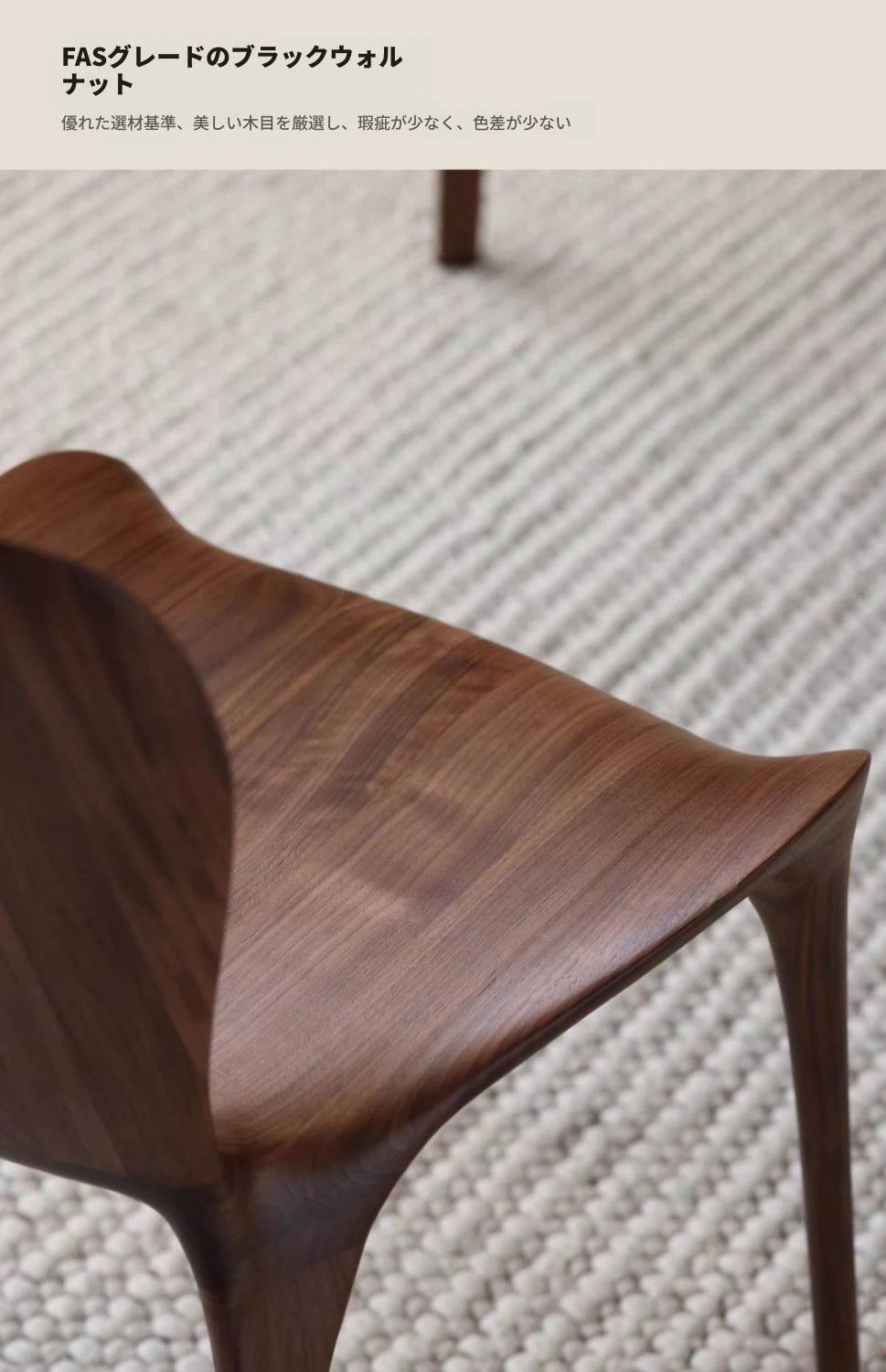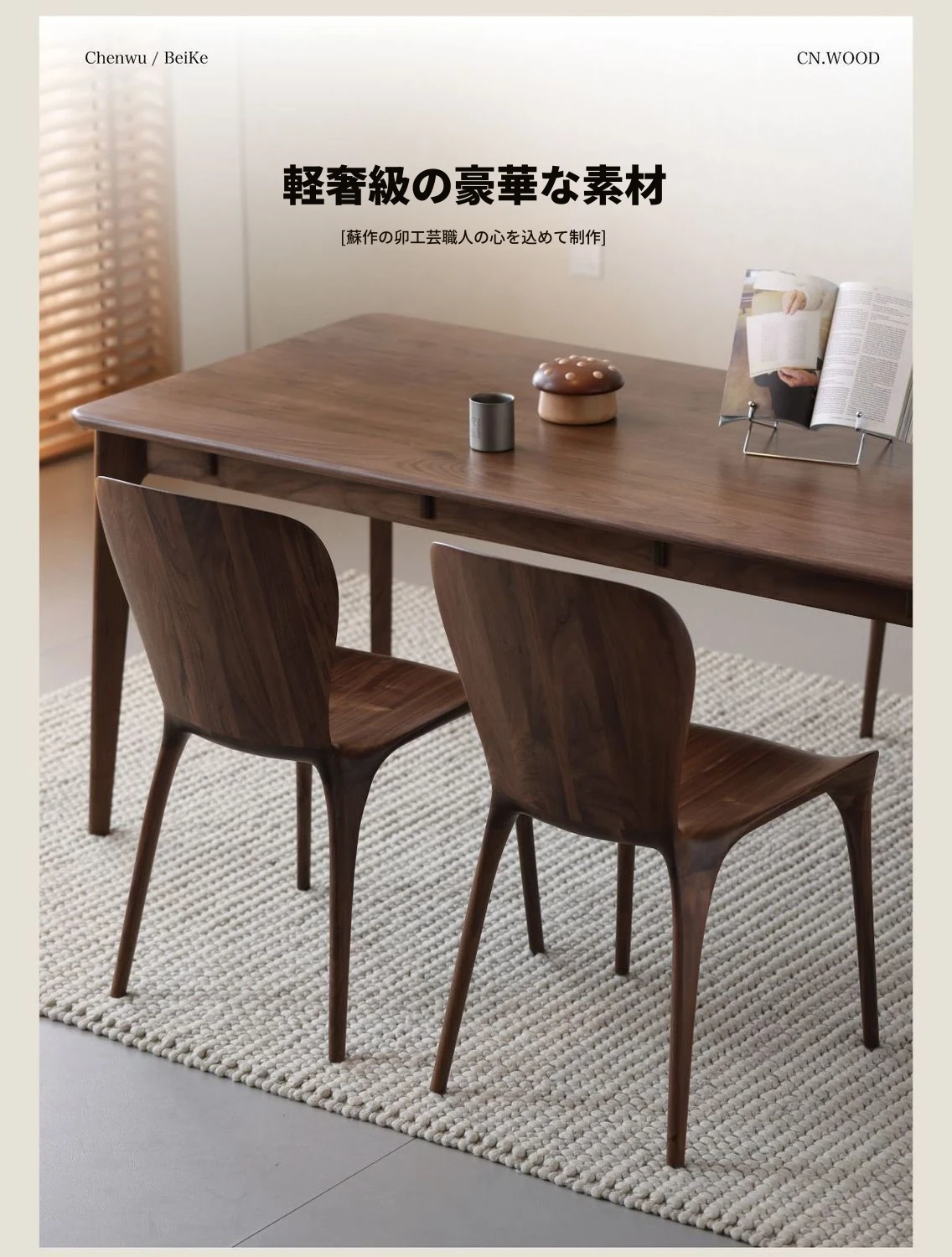 北米産ブラックウォールナット無垢材ダイニングチェア - 優れた榫接ぎ技術で作られたエレガントなユリカチェア。リラックスできる背もたれ付き、食事やティータイム、書斎にも最適な一品!