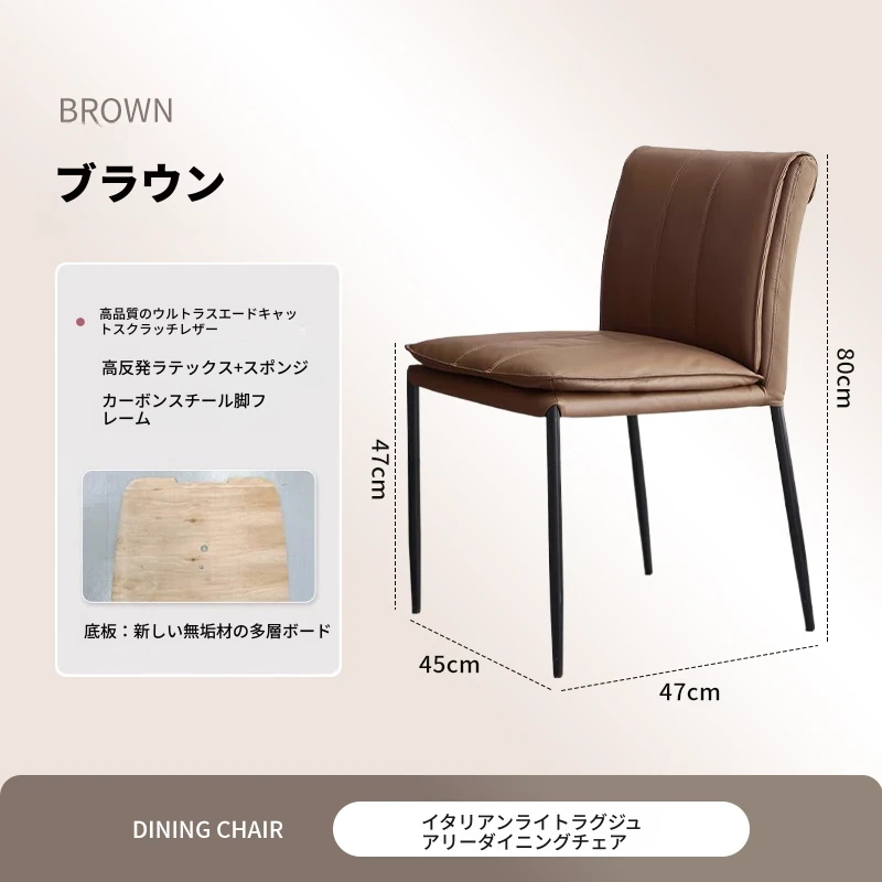 イタリアンライトラグジュアリー ダイニングチェア 高級サドルレザー使用 モダンミニマルデザイン おしゃれな背もたれ付き 家庭用・ホテル用に最適なシンプルなダイニングチェア