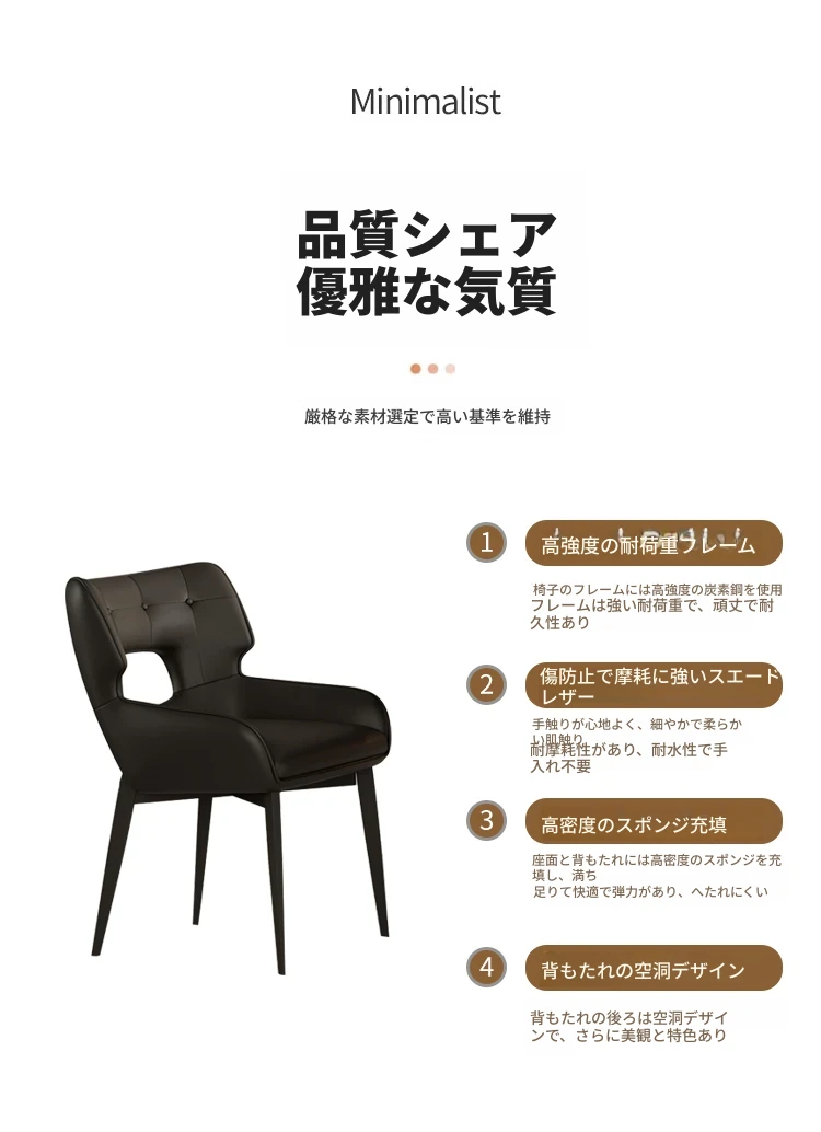 イタリアンミニマル高級無垢材ダイニングチェア|家庭用・背もたれ付き・別荘デザイン・デザイナー椅子・オーナー用ティーチェア・モデルルーム・書斎用チェア【洗練されたスタイルで、居心地の良い空間を演出】
