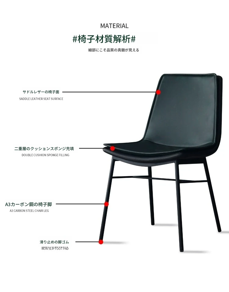 高級北欧スタイルの本革ダイニングチェア - 一級牛皮使用、モダンでシンプルなデザインのソフトパック、家での贅沢なひとときを演出する完璧な選択!