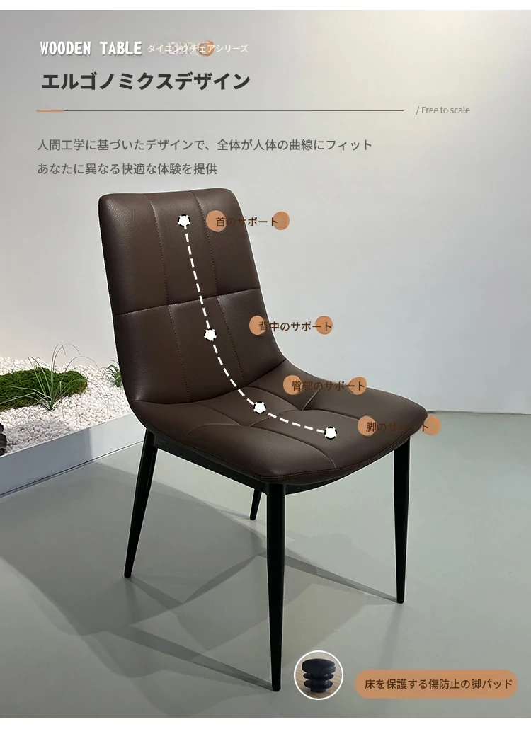 イタリアンミニマリズムダイニングチェア|シンプルでモダンなレザー製|北欧風のラグジュアリーなデザイン|快適なクッション付き背もたれ|おしゃれな食卓にぴったり!