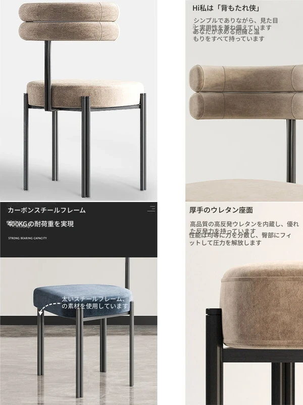 イタリアンシンプルデザインの高級アイアン製ダイニングチェア - 長時間の会議やリラックスタイムに最適!北欧スタイルのホテルや家庭用にぴったりな背もたれ付きチェア。