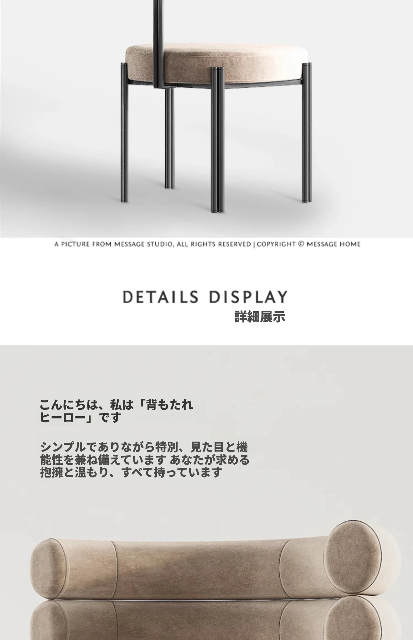 アイボリー色の皮革、ゴールドのスタンド