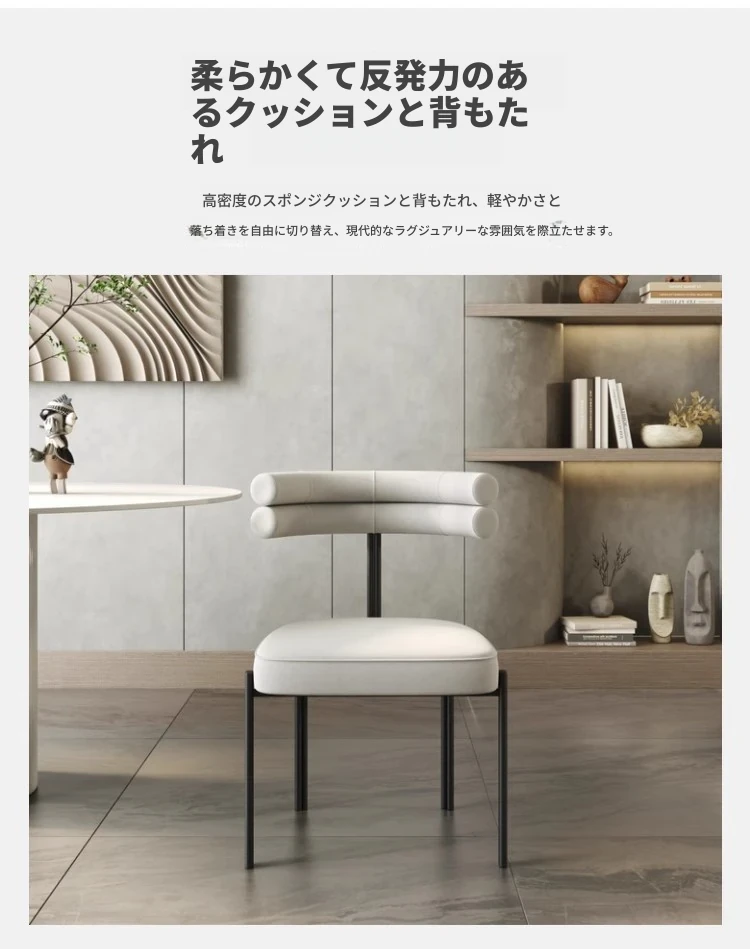 イタリアンシンプルデザインの高級アイアン製ダイニングチェア。軽やかで贅沢な雰囲気を演出し、長時間の商談やリラックスタイムに最適な北欧スタイルの背もたれ付きチェア。ホテルや家庭にぴったり!