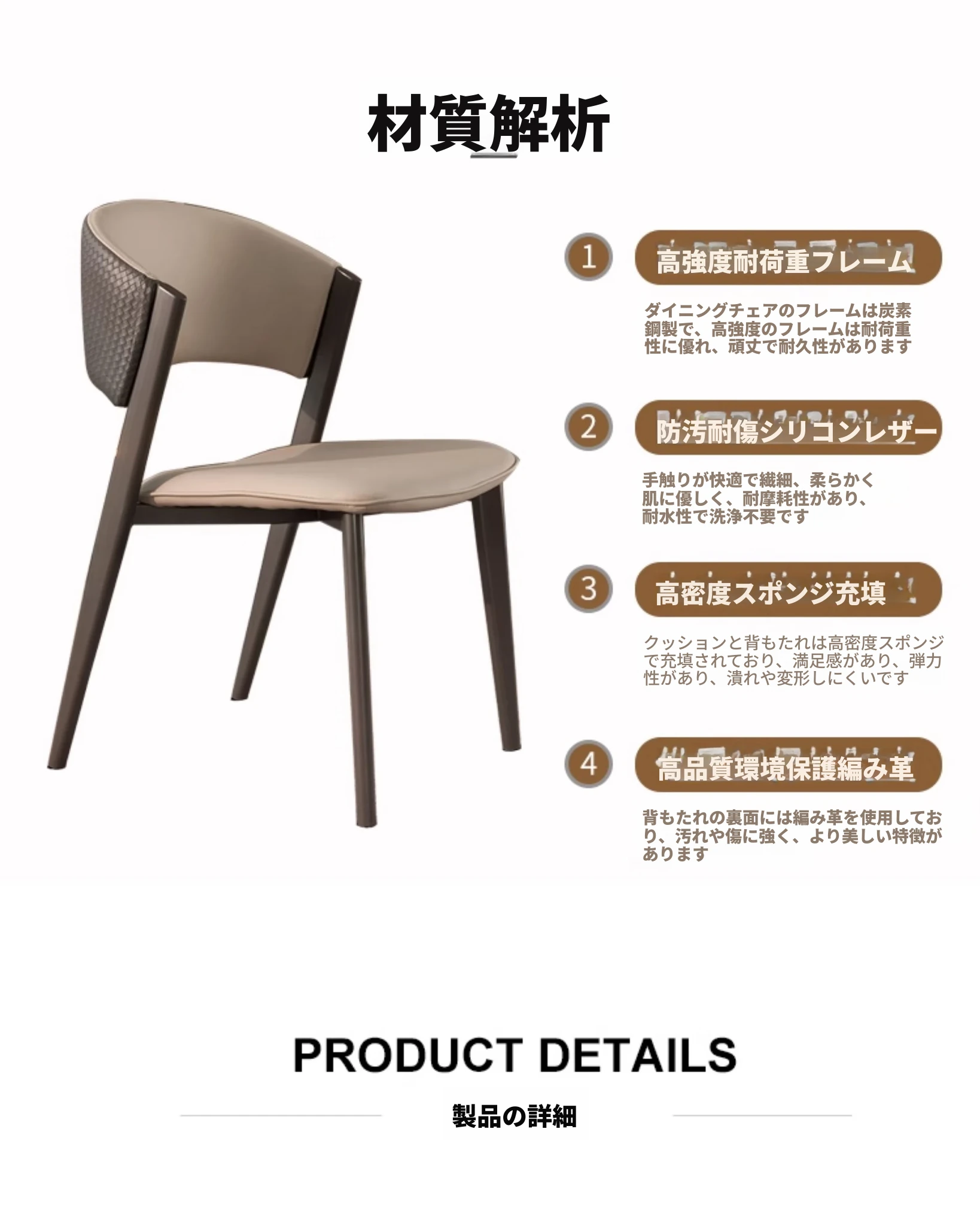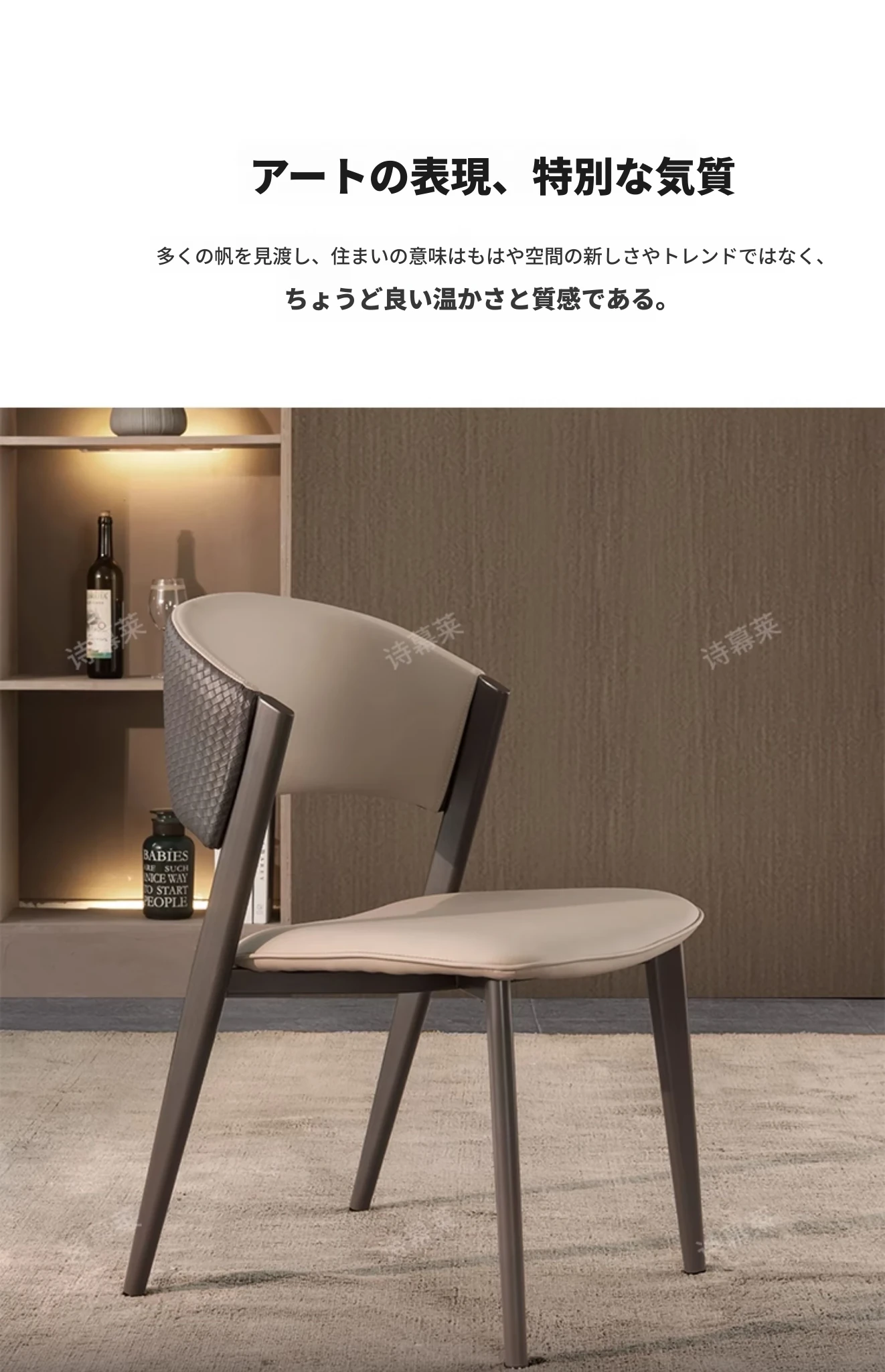 イタリアンラグジュアリー・ミニマルダイニングチェア「ミラノチェア」|高級感あふれるソフトパック背もたれ・レザー仕上げ|家庭用ダイニング、カウンターテーブルに最適なスタイリッシュな一脚!