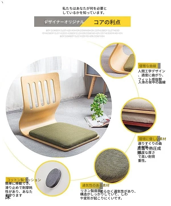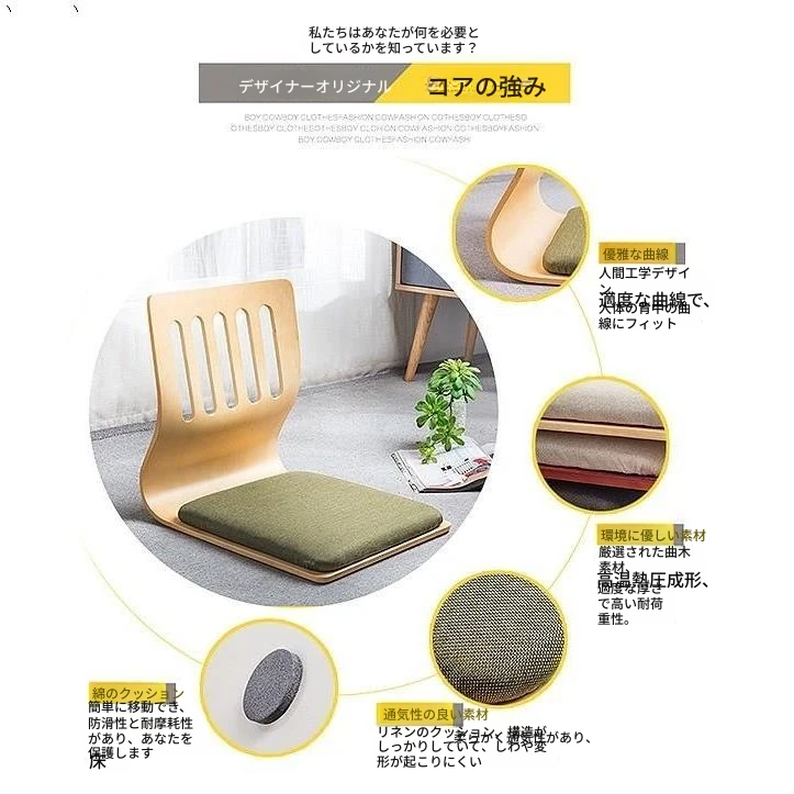 和風タタミラウンジチェア|寮生活に最適な床上座椅子|快適なクッション&背もたれ一体型|授乳にも便利なフロアチェア|脚なしデザインでスペースを有効活用!