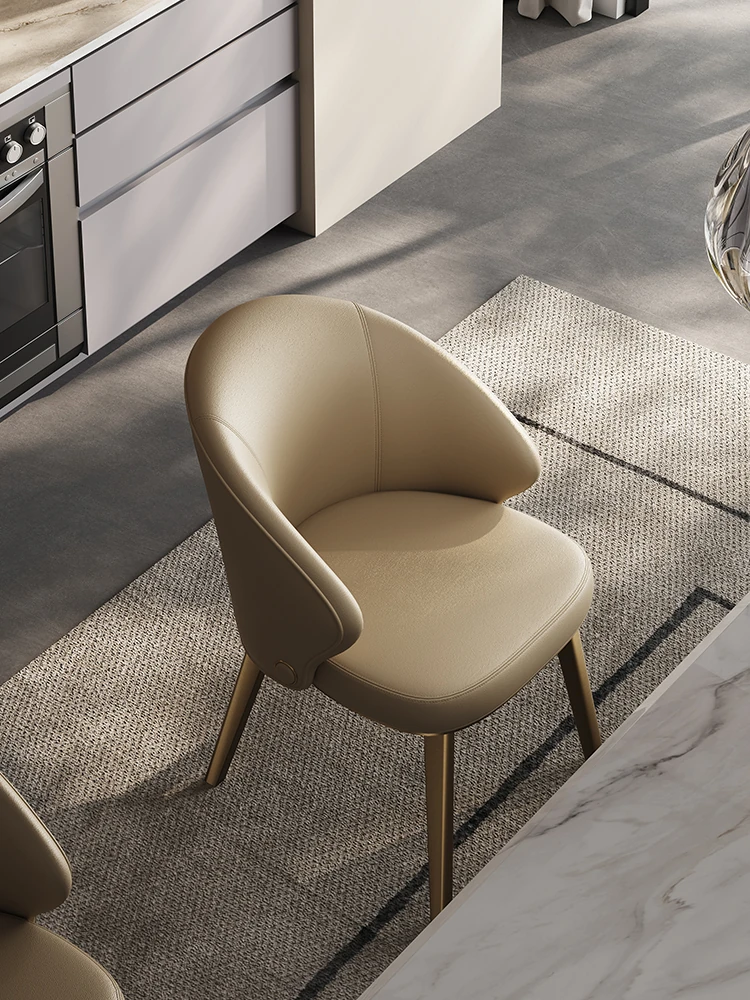 ラグジュアリーな本革ダイニングチェア - イタリアンミニマリズムの魅力!高級感溢れるソフトパッケージデザイン、ホテルや家庭にぴったりな牛革ダイニングセット。快適さとスタイルを両立した特別な一脚をお楽しみください!