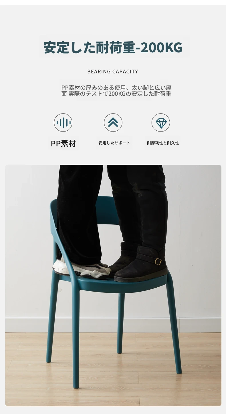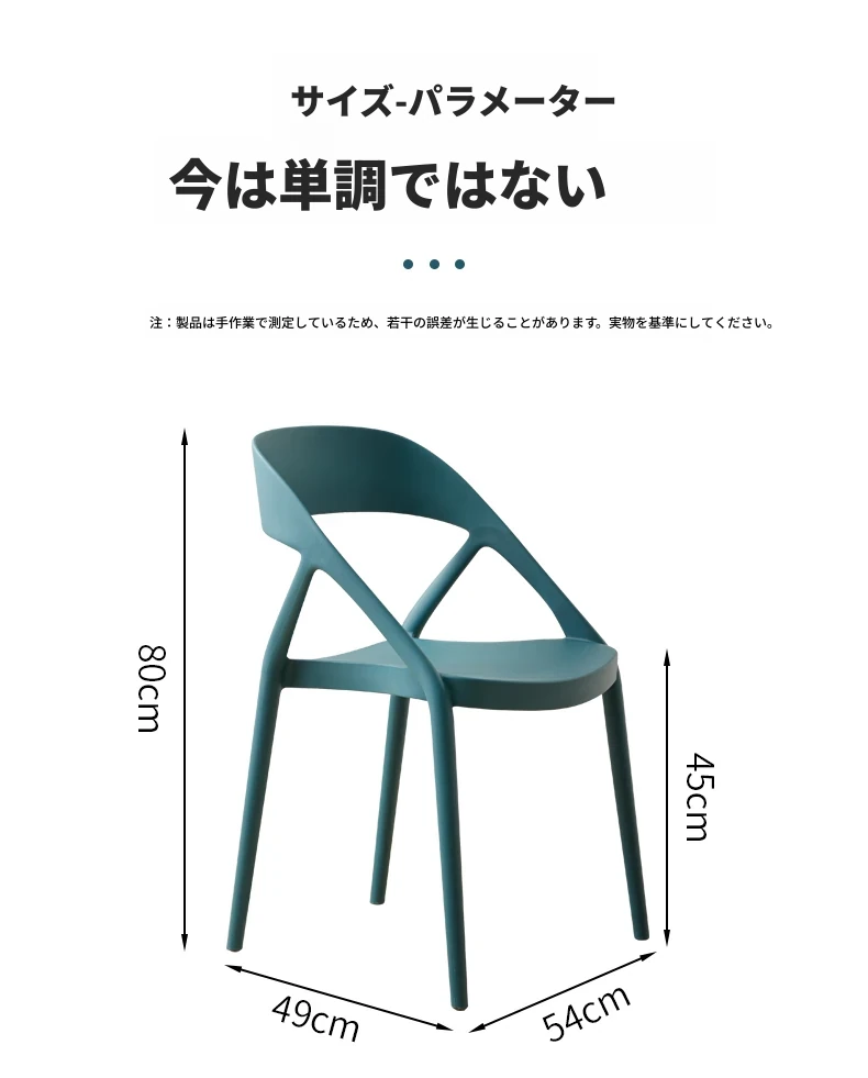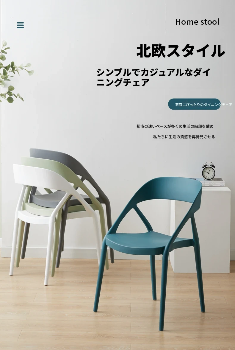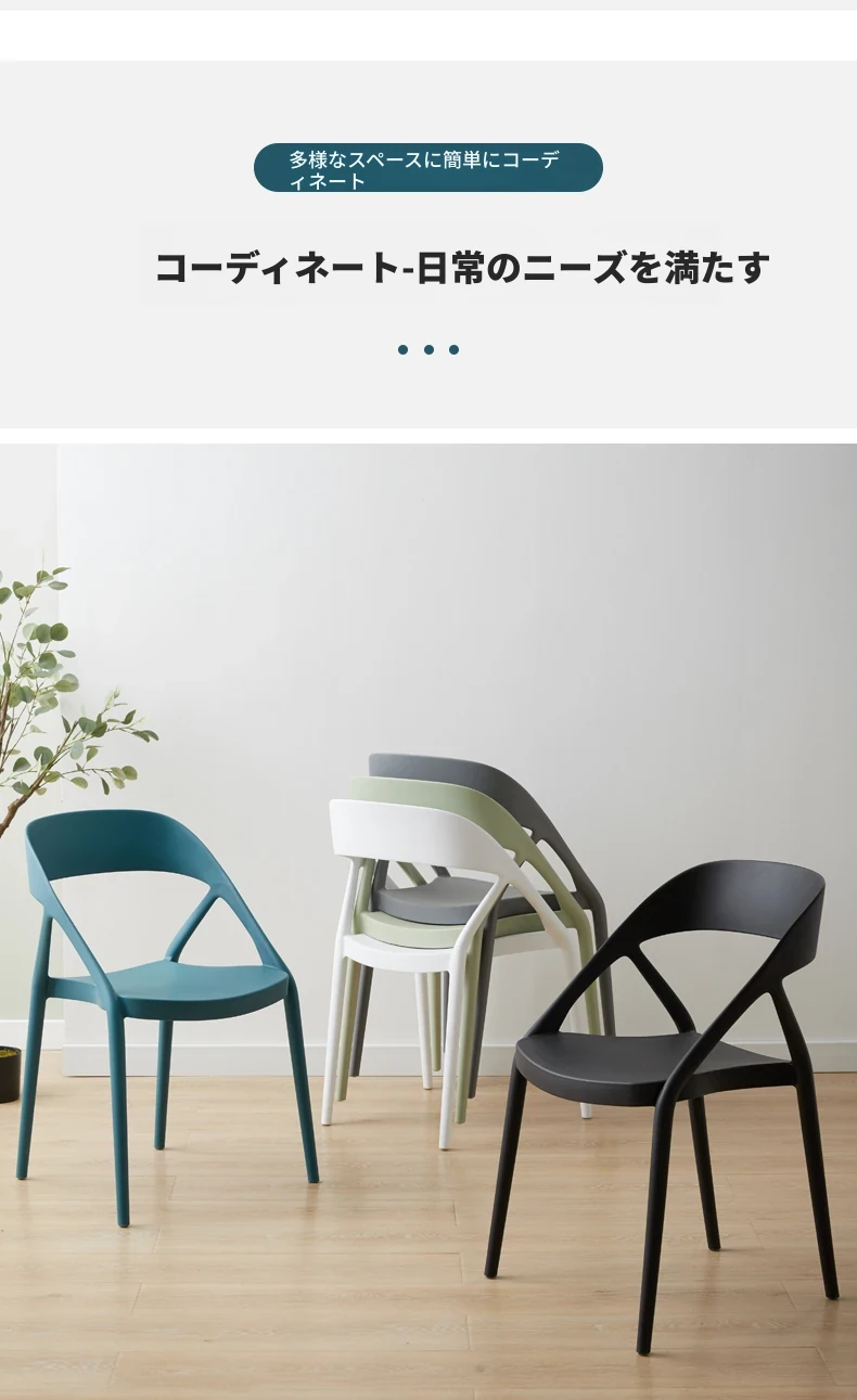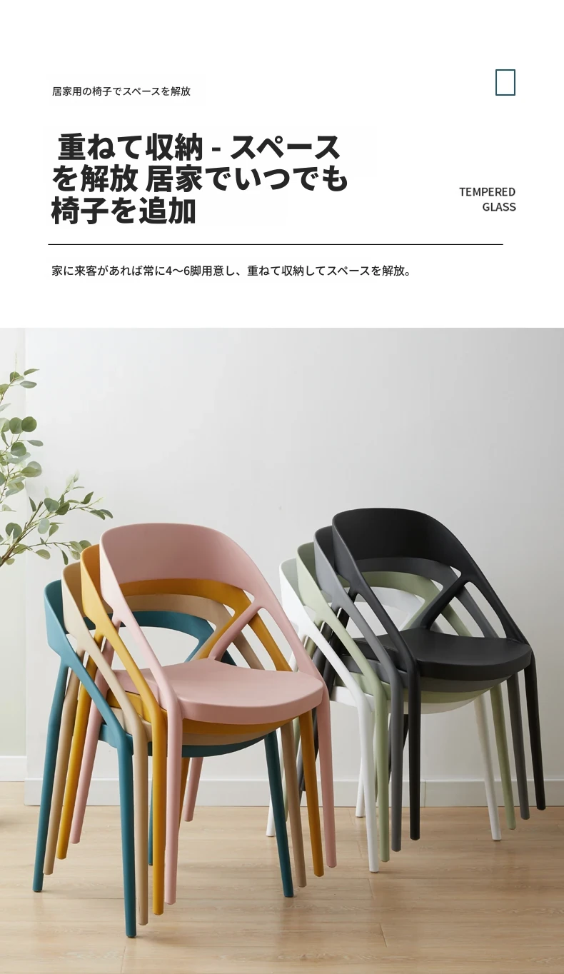シンプルでスタイリッシュな北欧風ダイニングチェア|軽量プラスチック製・快適な背もたれ付き|アウトドアにも最適・重ねて収納可能|長時間座っても疲れないリラックスチェア