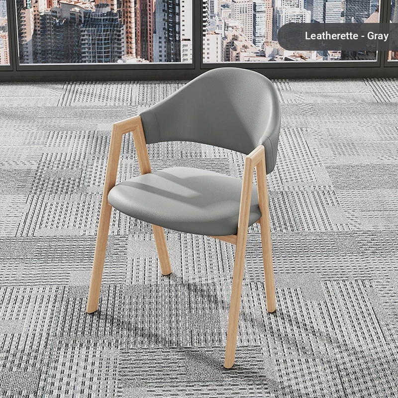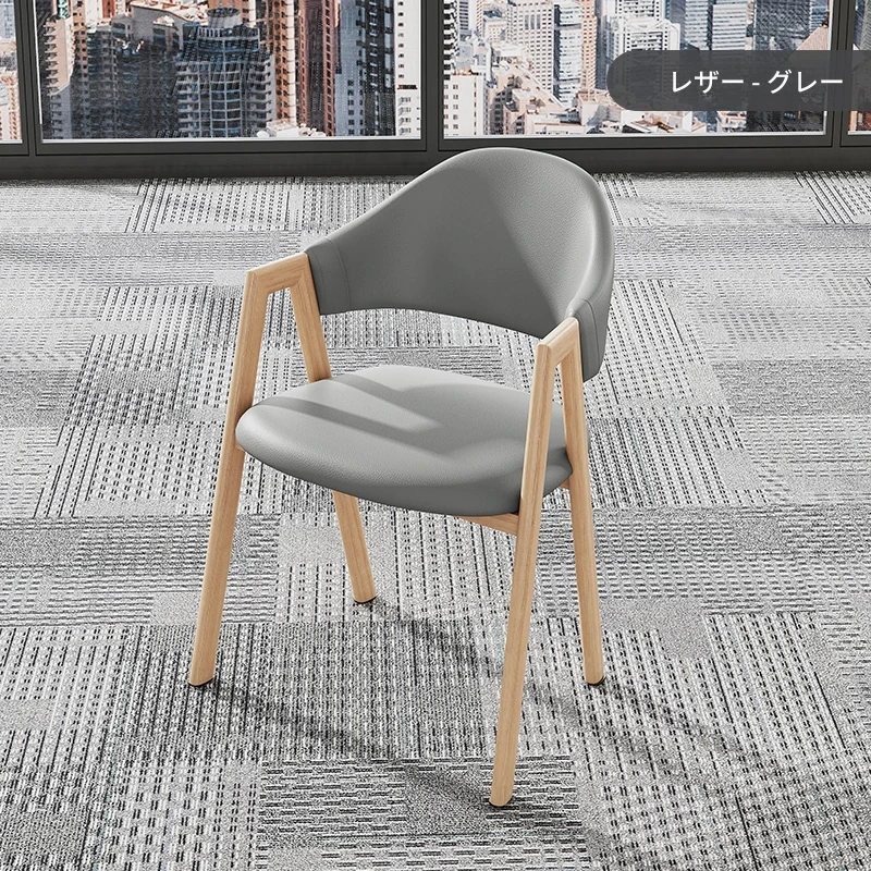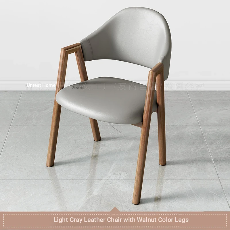 浅灰色の皮の椅子+胡桃色の椅子フレーム