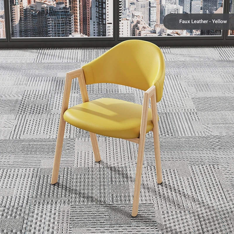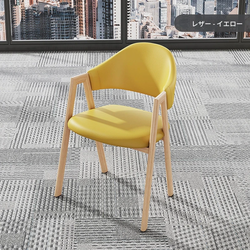 黄色の皮の椅子+木目調の椅子フレーム