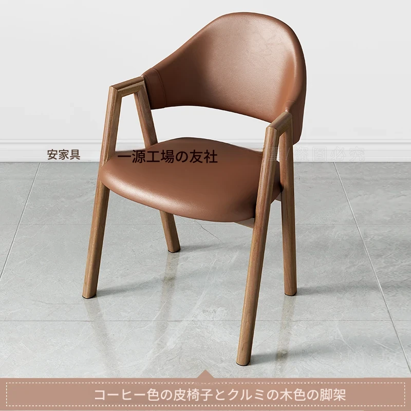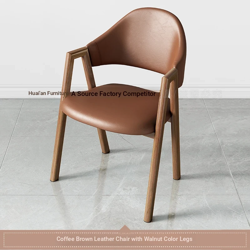 コーヒー色の皮の椅子+胡桃色の椅子フレーム