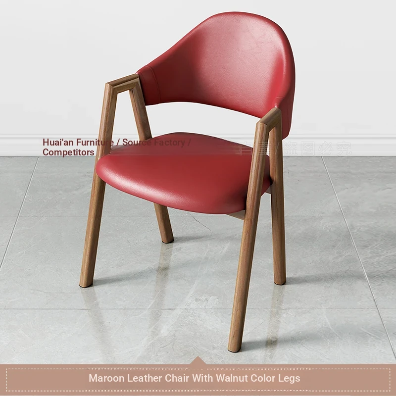 マゼンタ色の皮の椅子+胡桃色の椅子フレーム