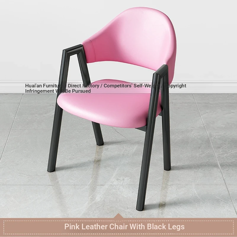ピンク色の皮の椅子+黒のファブリック椅子フレーム