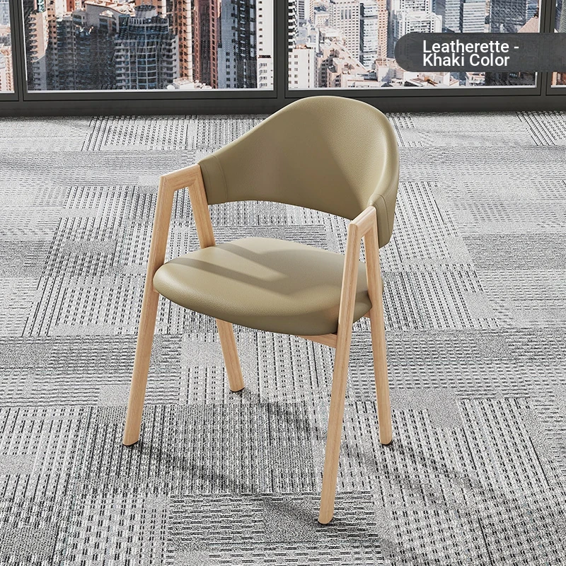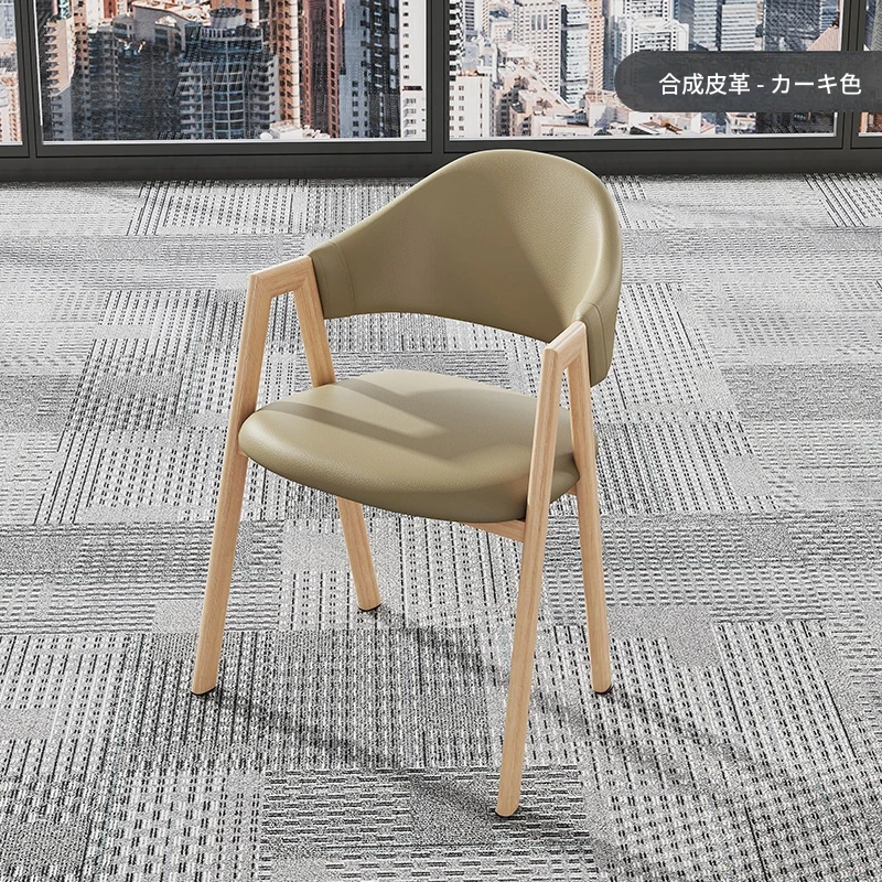 カーキ色の皮の椅子+木目調の椅子フレーム