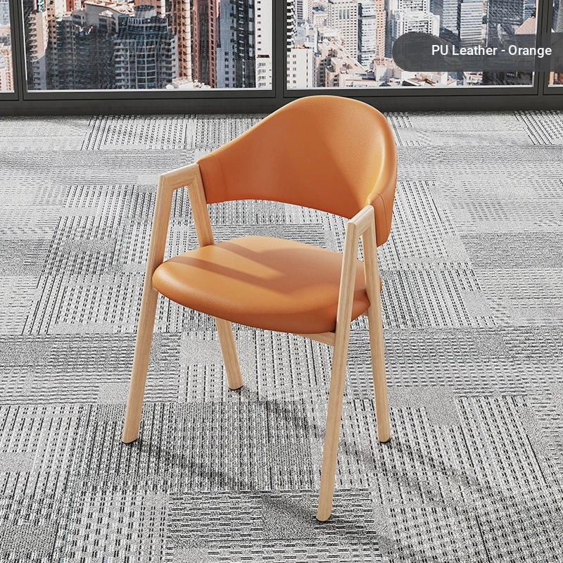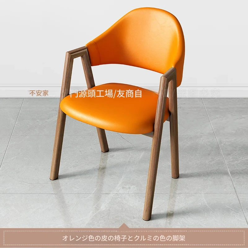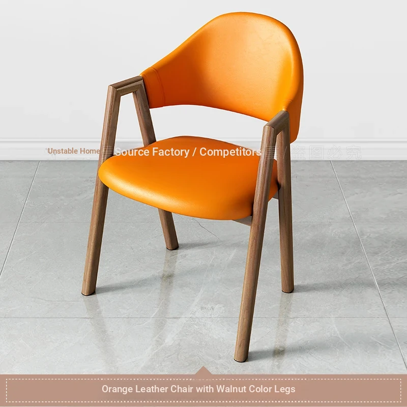 オレンジ色の皮の椅子+胡桃色の椅子フレーム