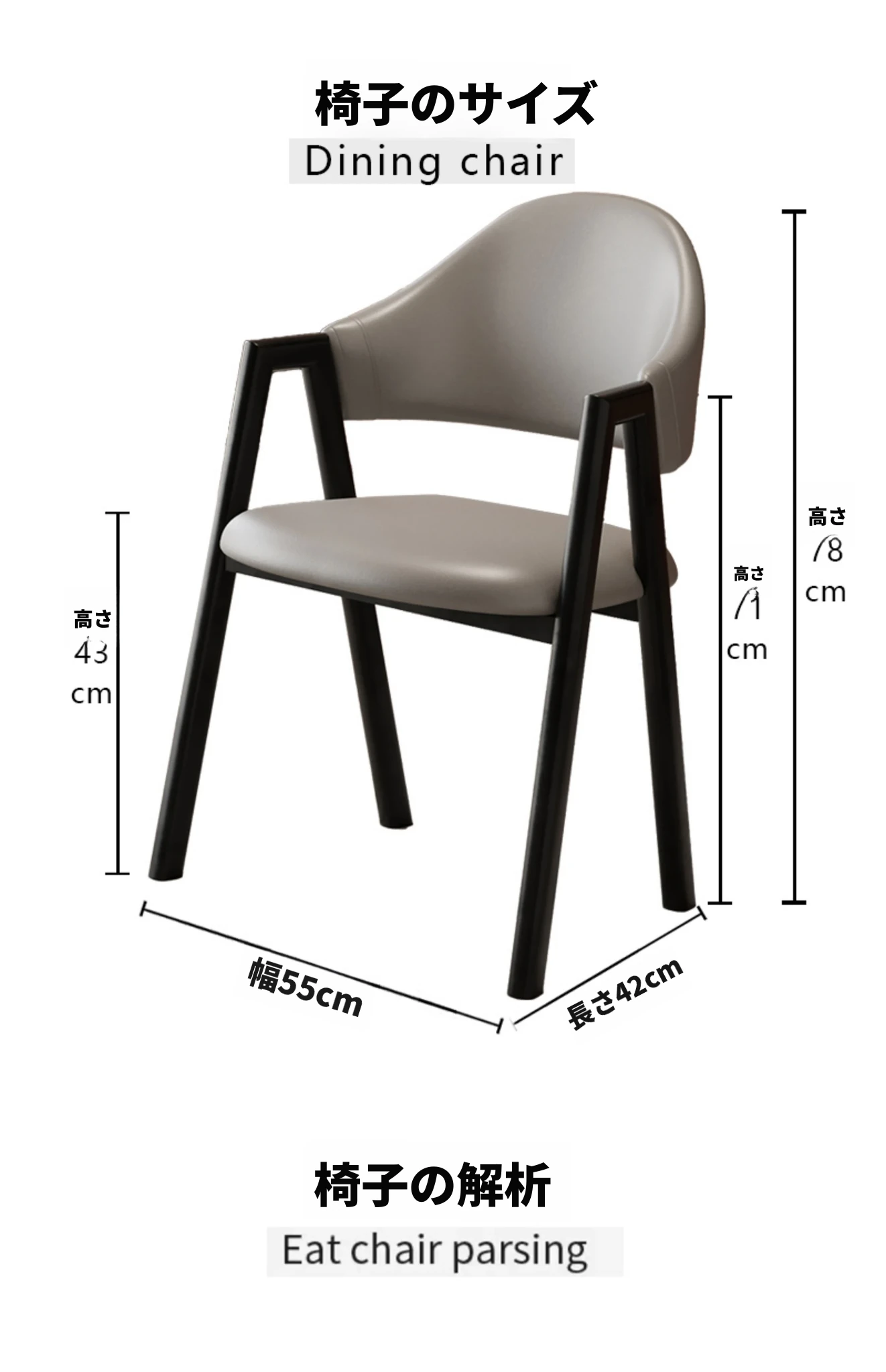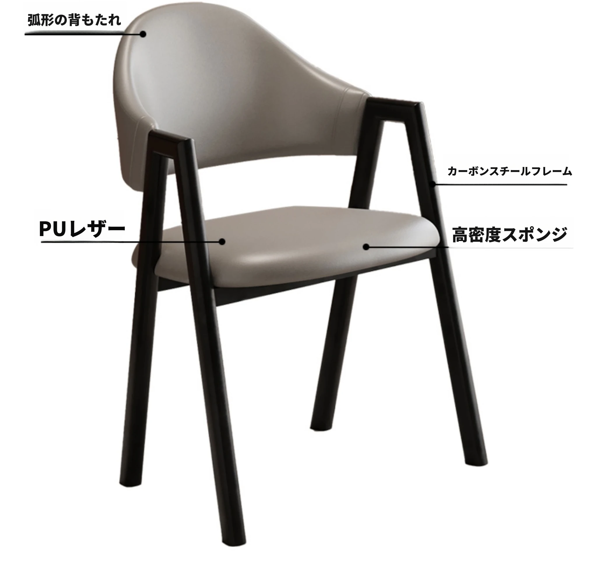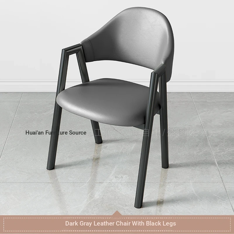 深灰色の皮の椅子+黒のファブリック椅子フレーム