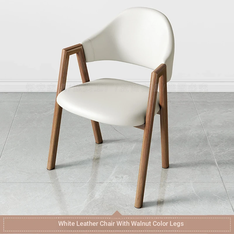 白色の皮の椅子+胡桃色の椅子フレーム