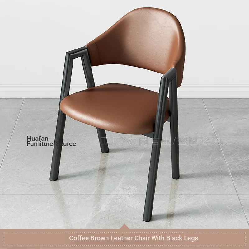 コーヒー色の皮の椅子+黒のファブリック椅子フレーム