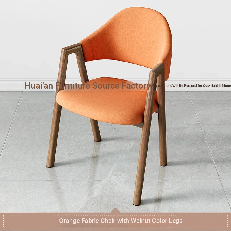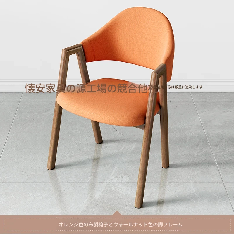 オレンジ色の布の椅子+胡桃色の椅子フレーム