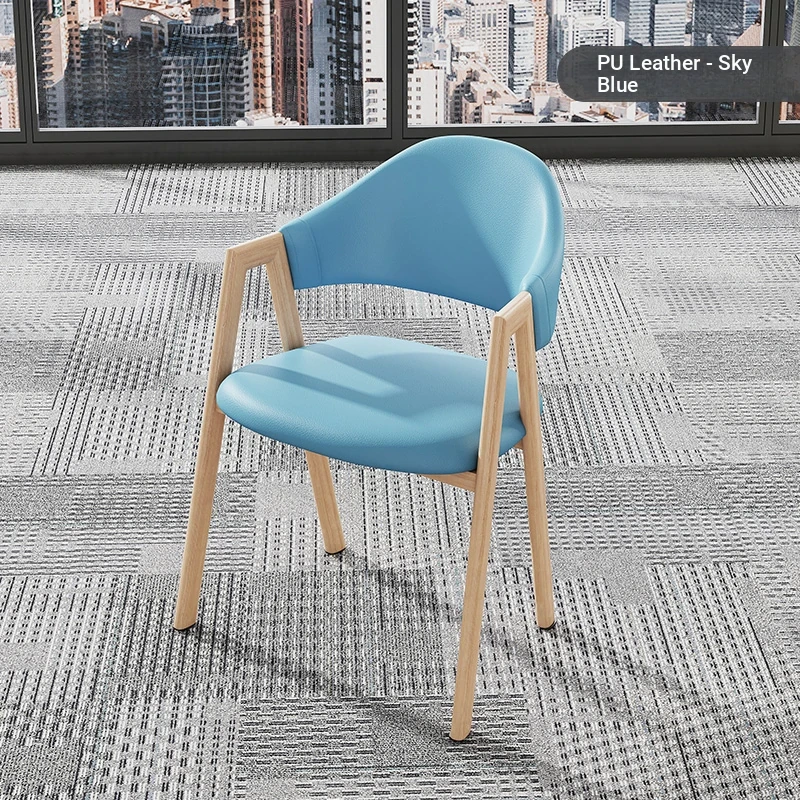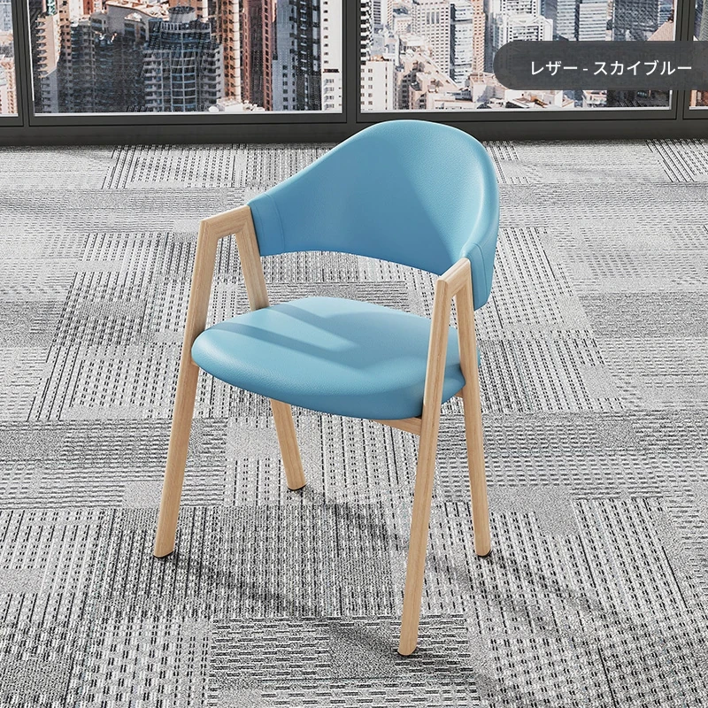 空色の皮の椅子+木目調の椅子フレーム